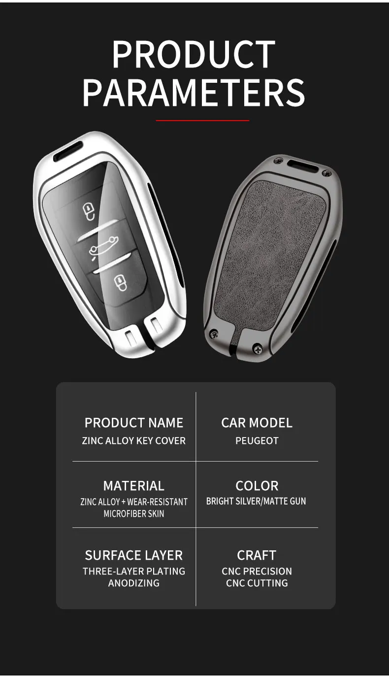 Color Name: Red - Car Metal Key Case Cover Shell Fob For Peugeot 308 408 508 2008 3008 4008 5008 For Citroen C4 C6 C3-XR key chain Accessories