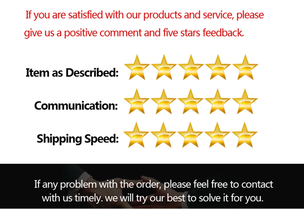 If you are satisfied with our products and service, please give us a good comment and five stars feedback.
