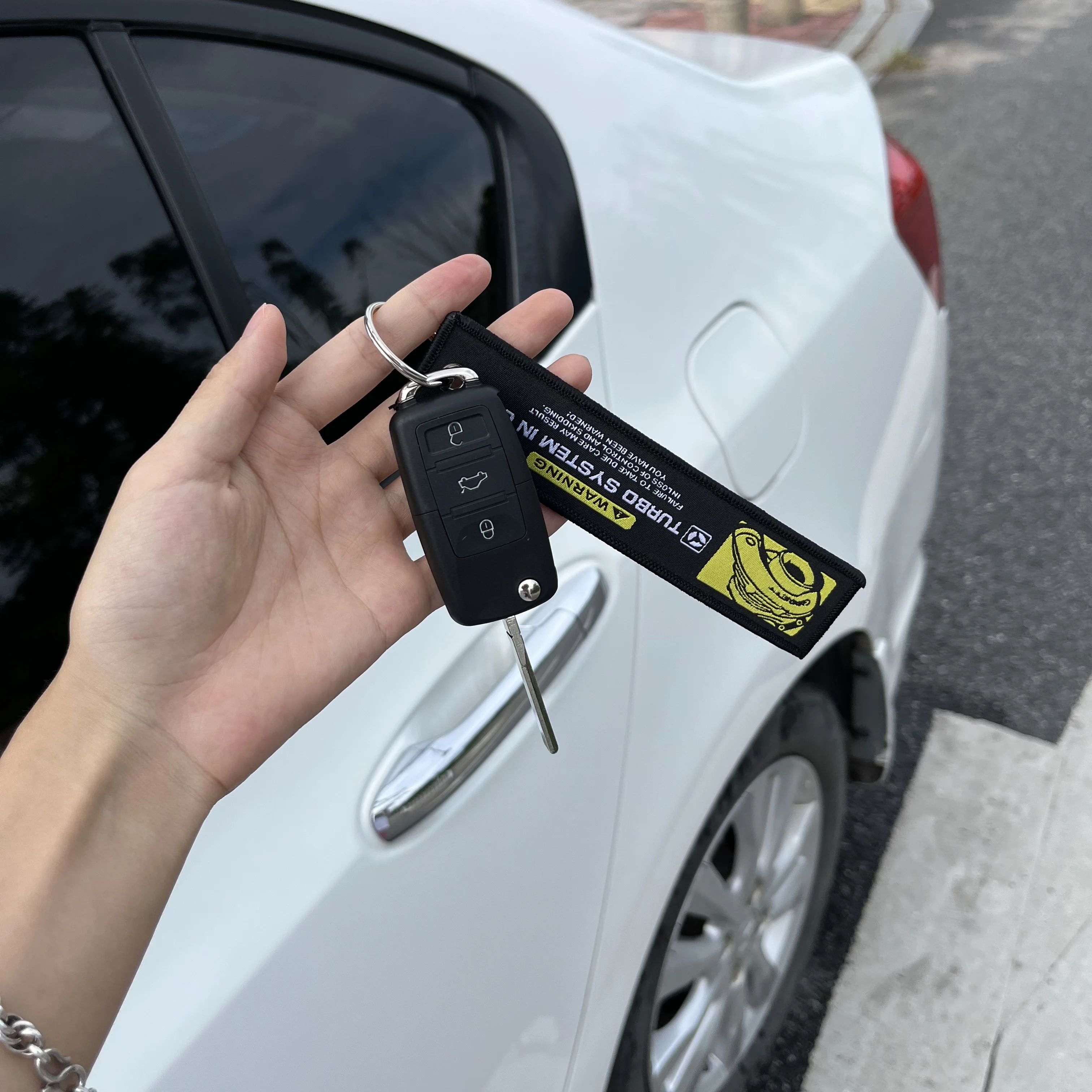 Color Name: Silver - JDM HKS Keychain Embroidered Woven Personality Fashion Cloth for Honda Key Chain Car Motorcycle Key Rings Key Holder Pendant Nos