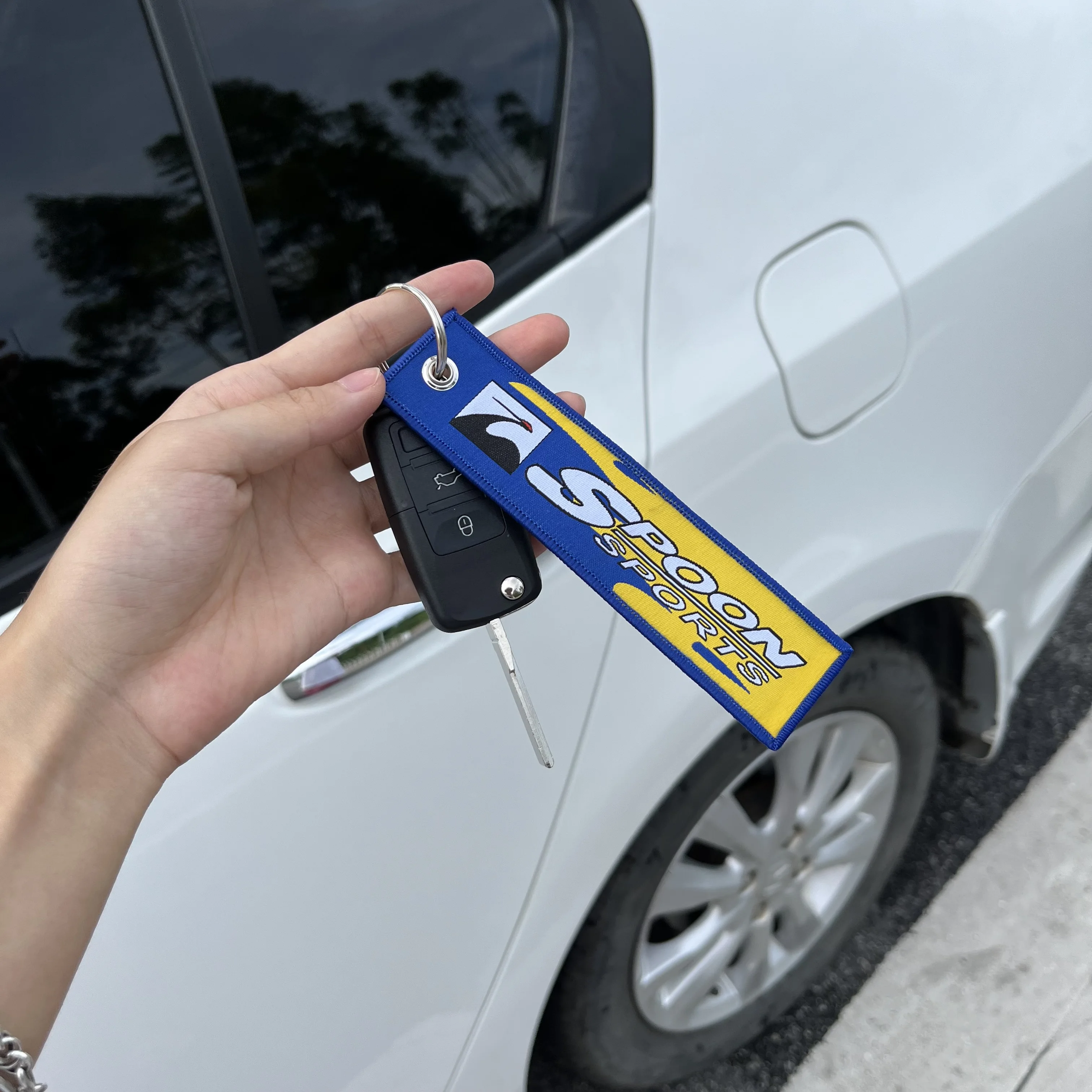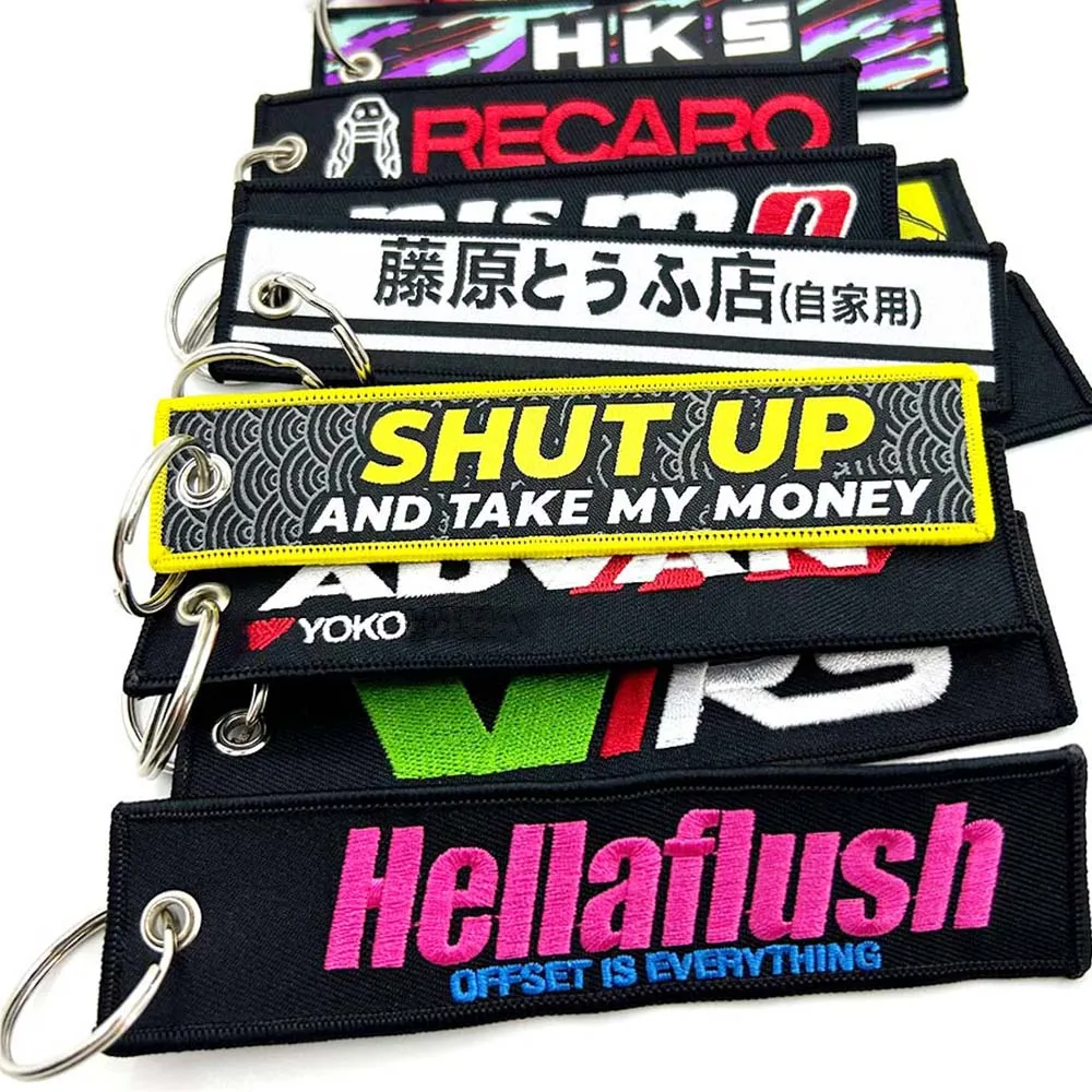 Color Name: WHITE - JDM HKS Keychain Embroidered Woven Personality Fashion Cloth for Honda Key Chain Car Motorcycle Key Rings Key Holder Pendant Nos