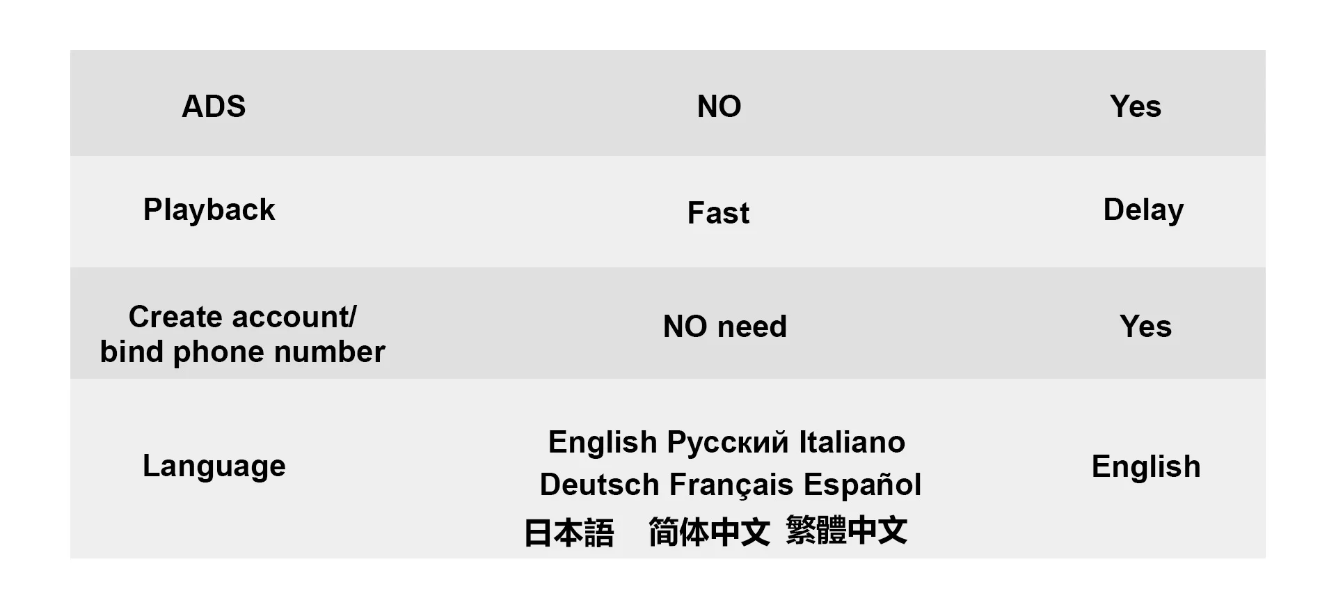 Supports languages in multiple countries