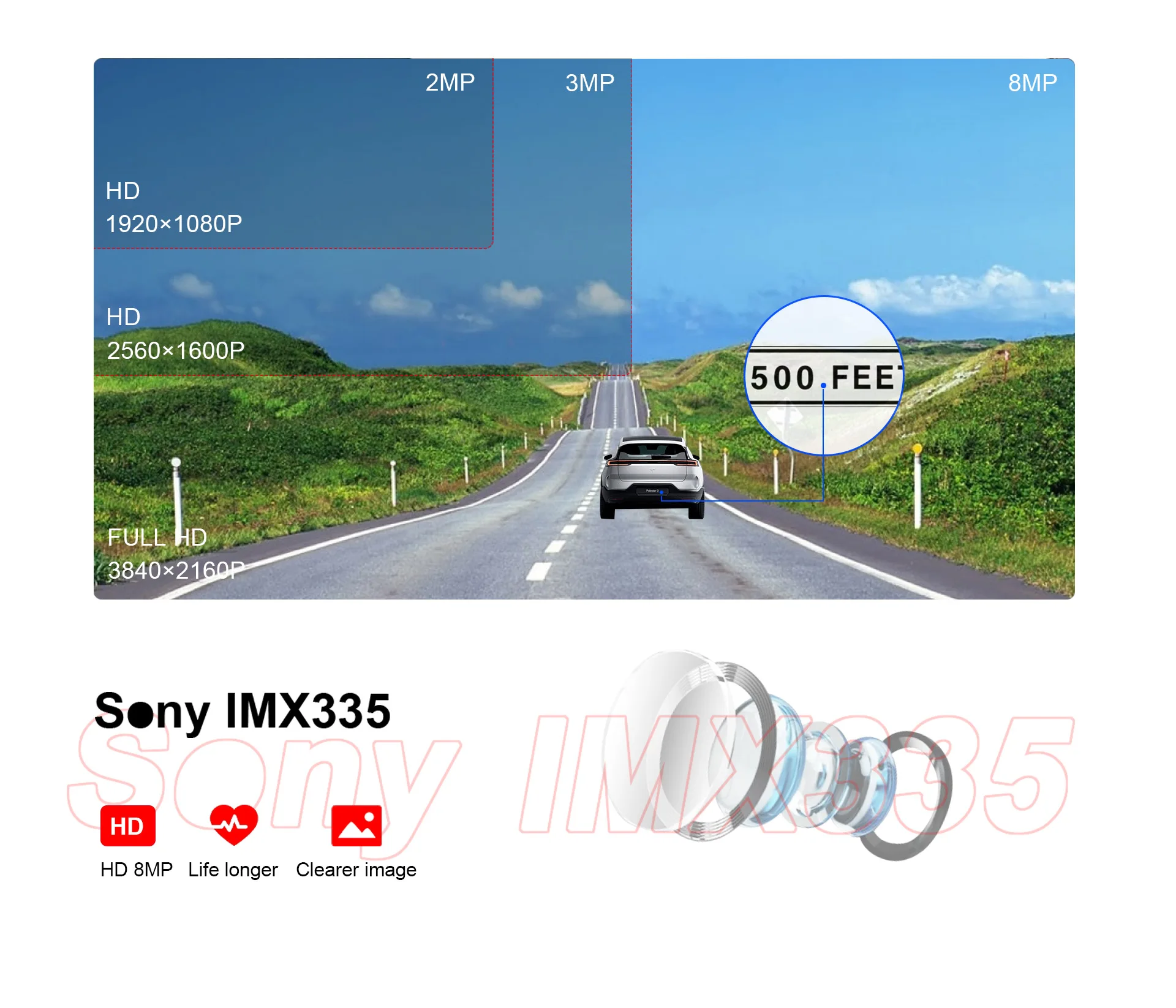 For SONY HD lens,It will not crash even under high-intensity work. With an 8 megapixel lens, and provide professional 30fps video, which can vividly capture your driving moments and record detailed evidence.Flagship image sensor with 6 sets of 2160Pultra clear glass lenses, Inthe fusion F1.6 large aperture at a glance in the night low light environment, details clearly visible.