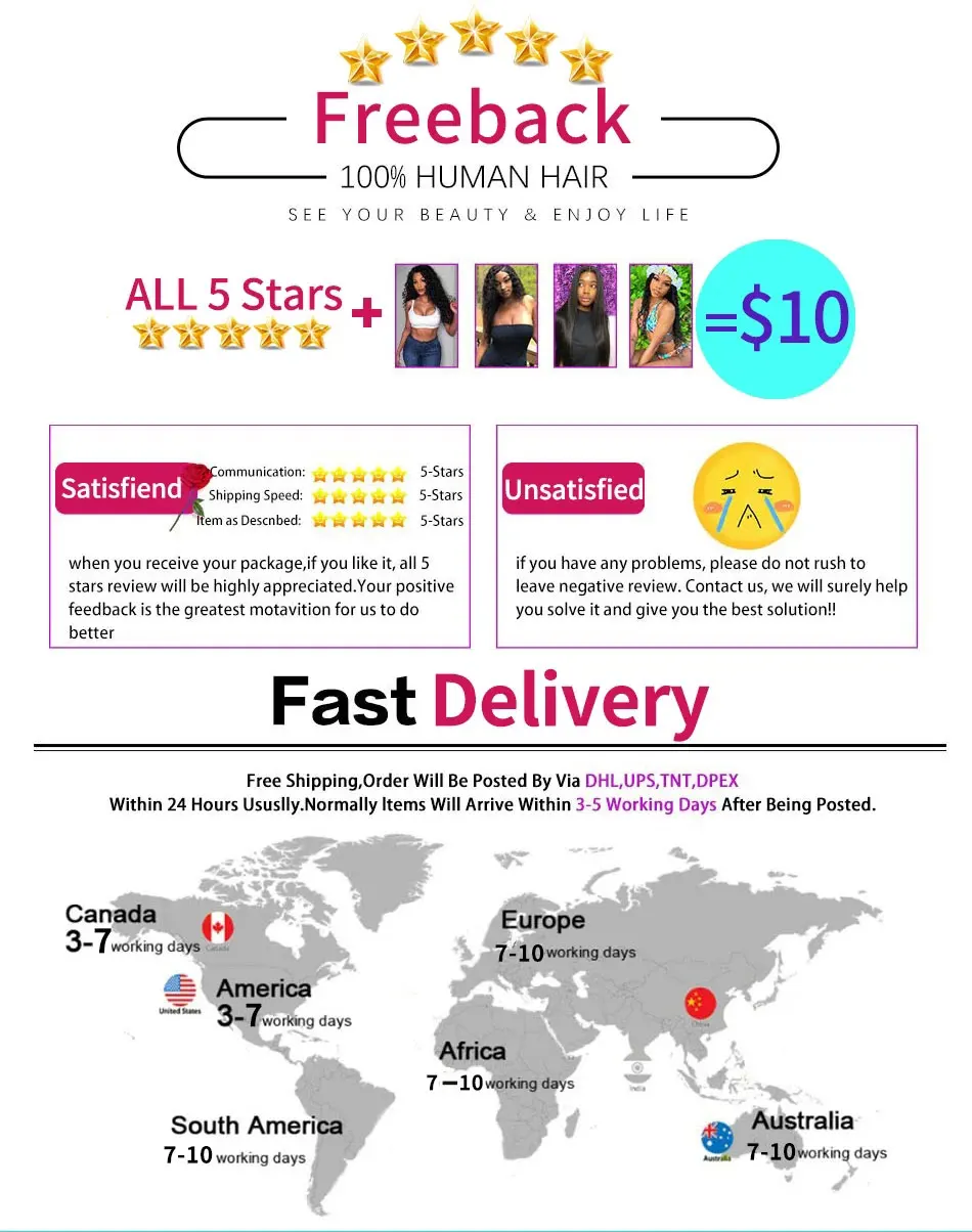 6)Refund Policy: Refund is avaliable within 15 days when hair is orginal state