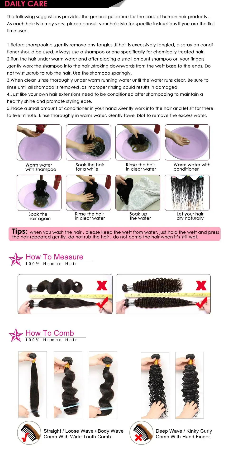 2) Hair Material: 100% Virgin Human Hair