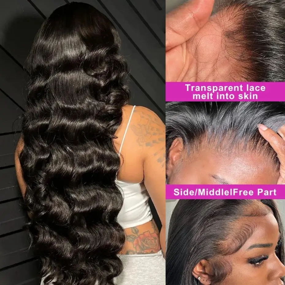 Color: Natural Color, Ships From: CHINA, Stretched Length: 16inches, Density: 150% - 13x4 13x6 Transparent Body Wave Wig Pre Plucked Glueless 4x4 HD Lace Closure Wigs For Women Brazilian Lace Front Human Hair Wig