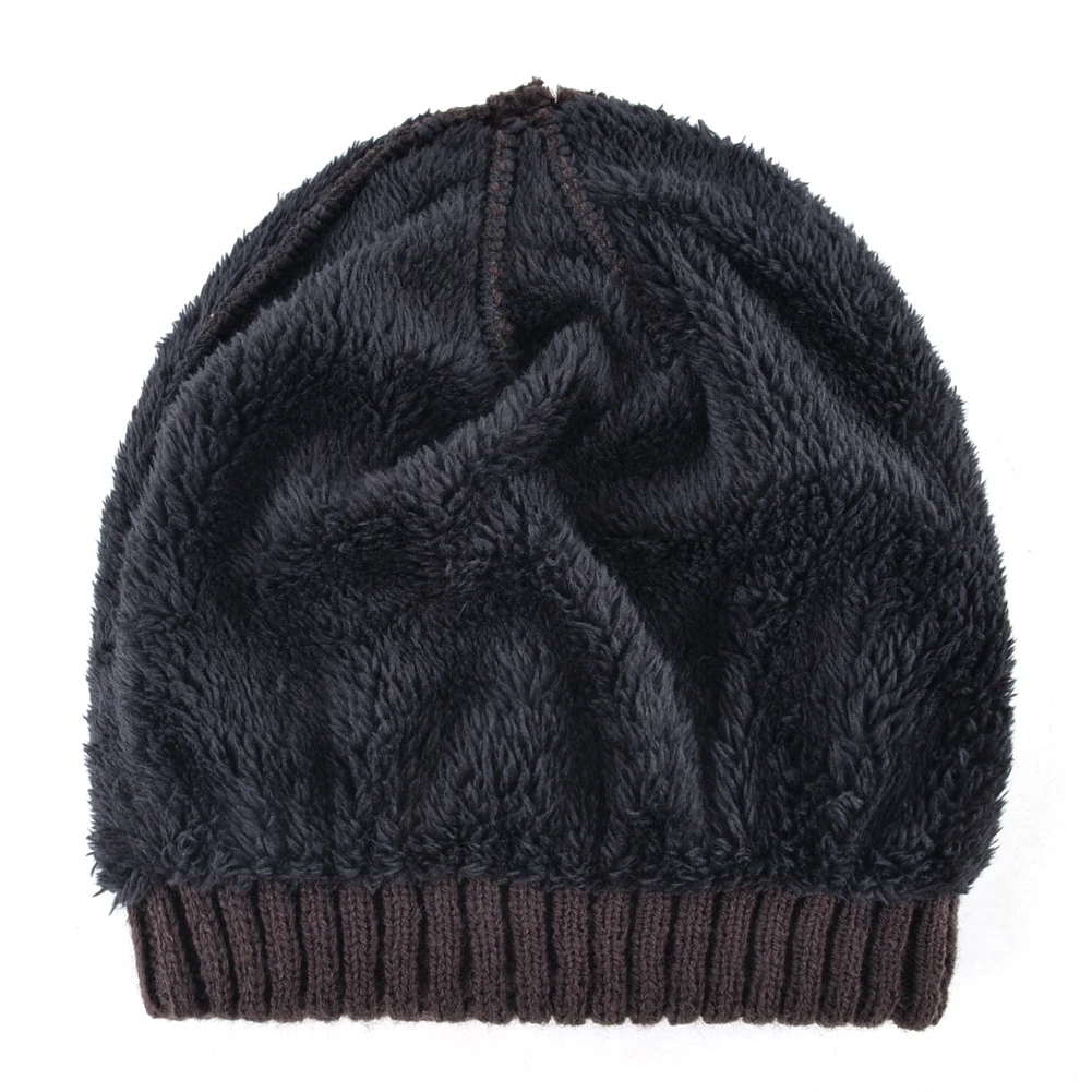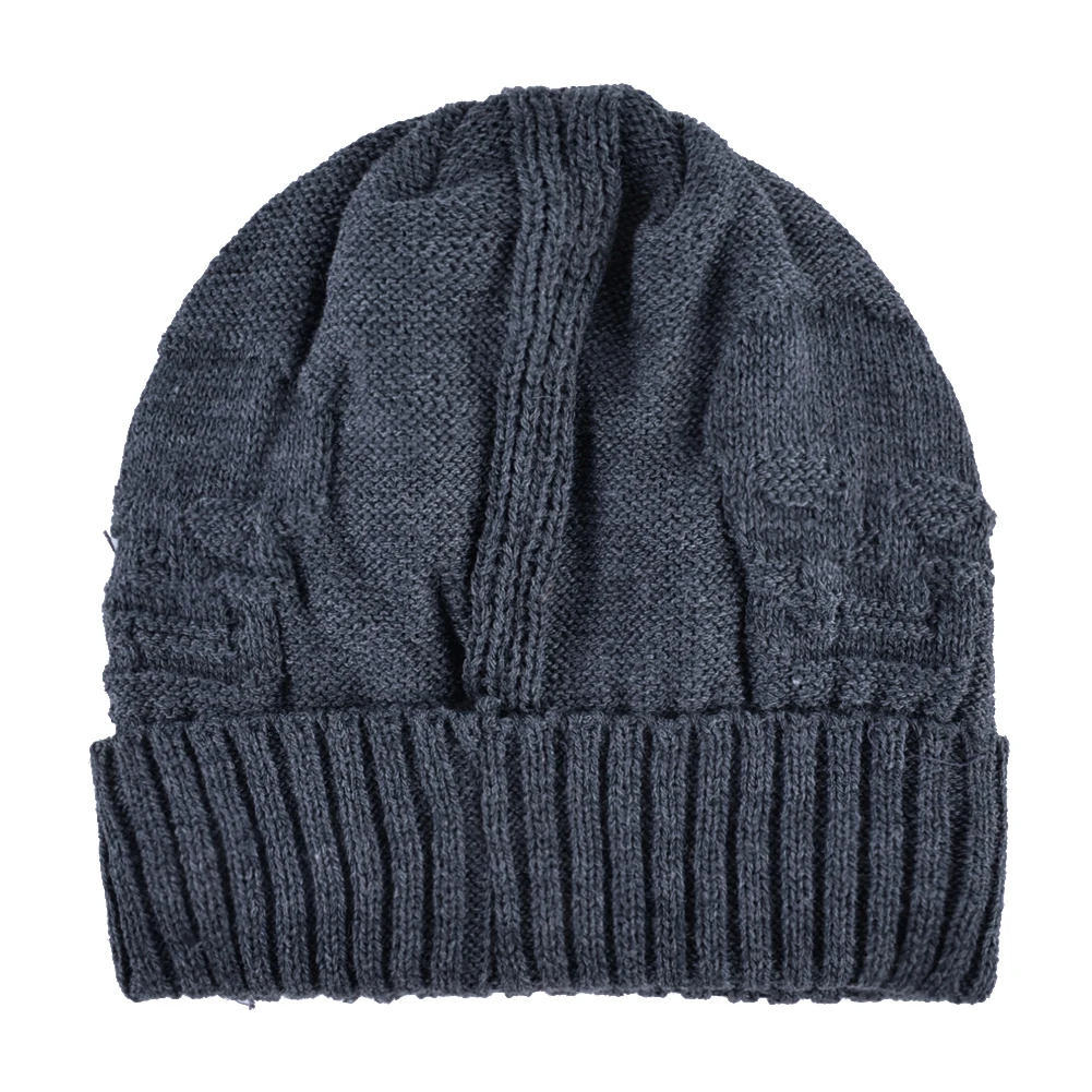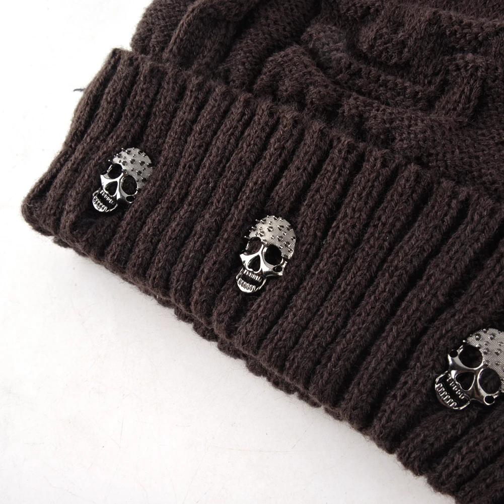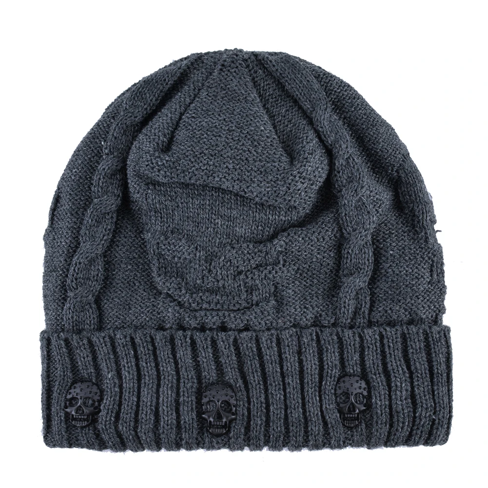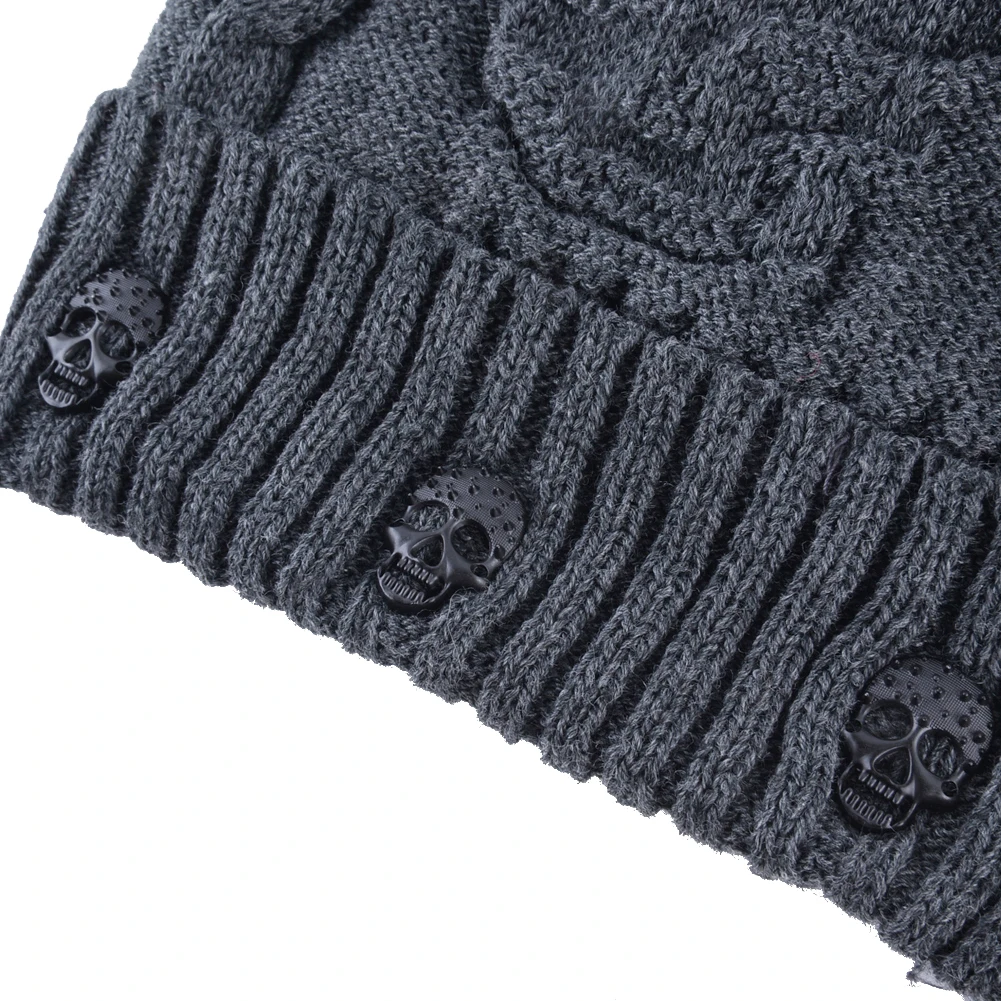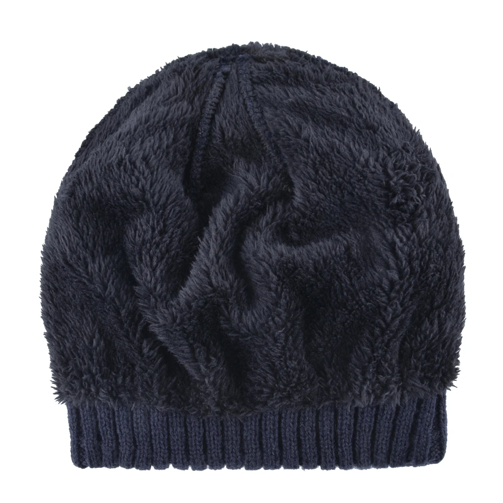 Color: Navy Blue, Size: 56/57 - Winter Beanies Men Knitted Skull Pattern Solid Color Hat With Metal Skulls Skullies Beanies Men's Knit Thick Hats Add Velvet