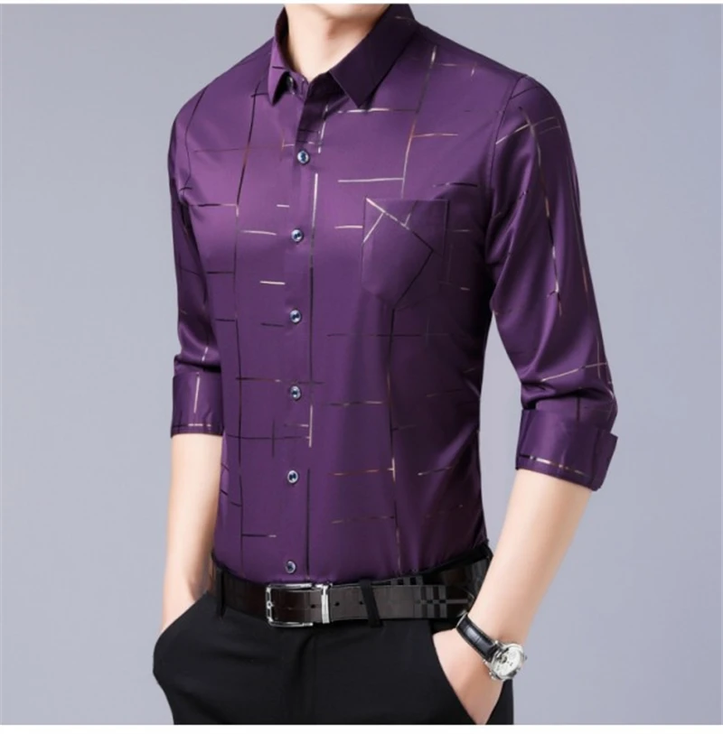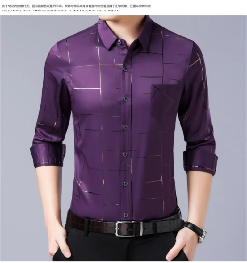 Color: Navy Blue, Size: L - Men's Casual and Fashionable Long Sleeved Printed Shirt, Non Ironing and Wrinkle Resistant Business Top