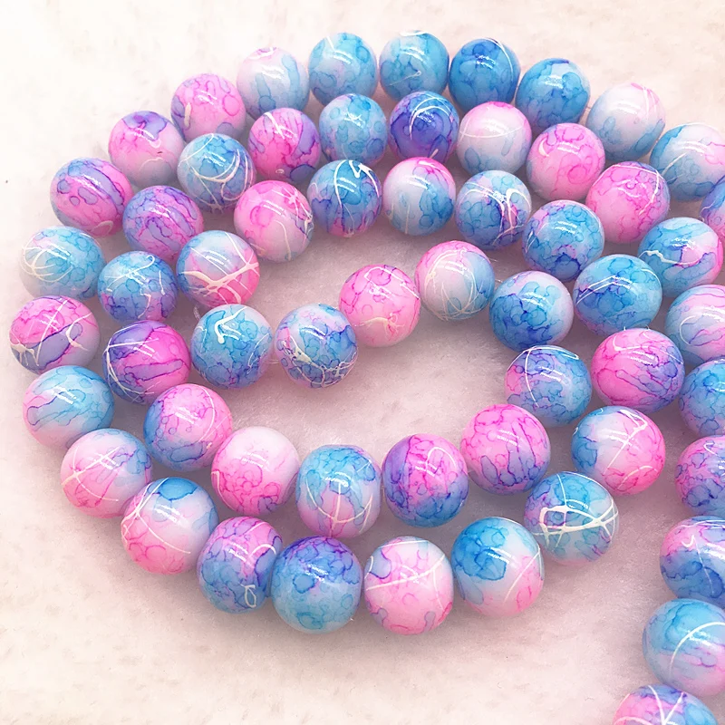 Color: NUDE, Item Diameter: 5mm - Wholesale 4/6/8/10mm Glass Beads Round Loose Spacer Beads Pattern For Jewelry Making DIY Bracelet Necklace
