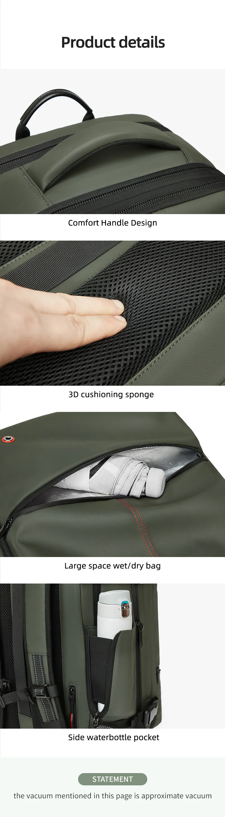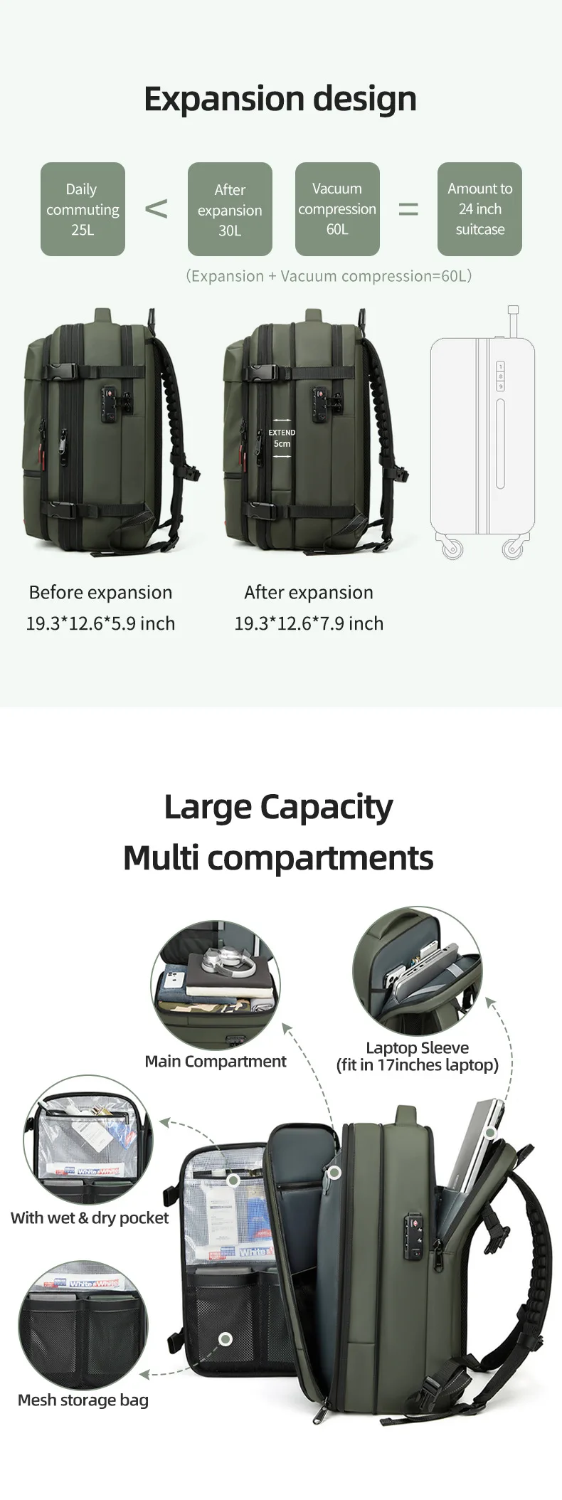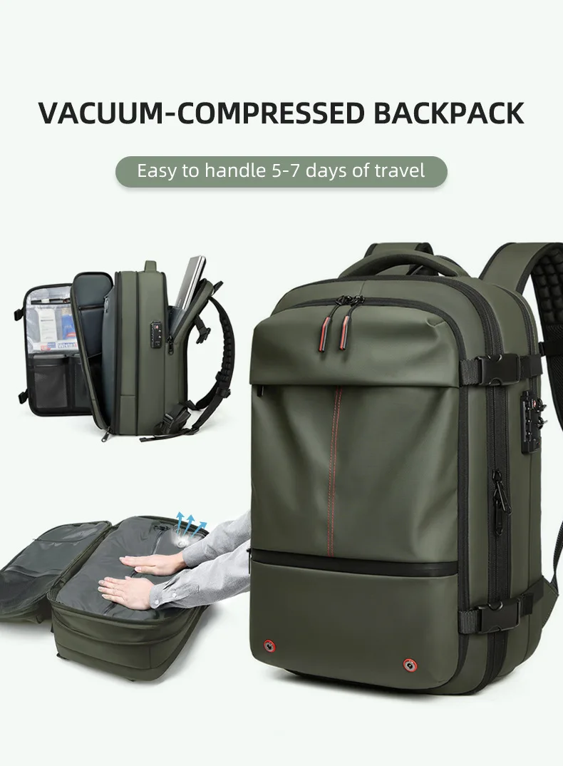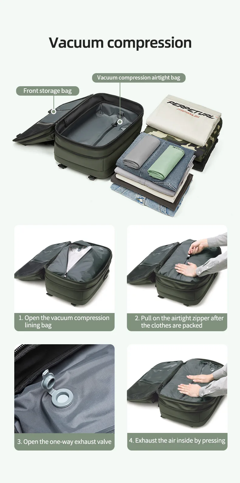 Vacpack Vacuum Compression Backpack with Pump Men Waterproof Expandable Airback Carry On Travel Backpack 17inch Laptop Backpack