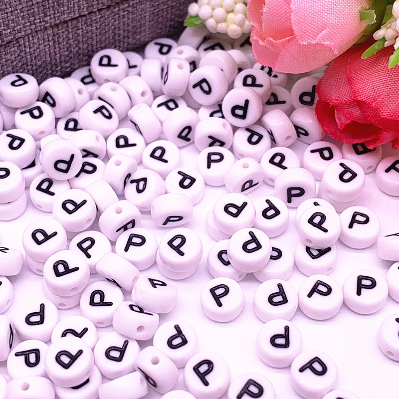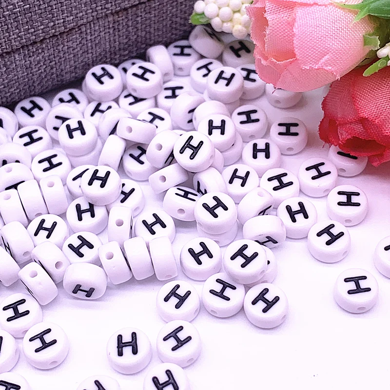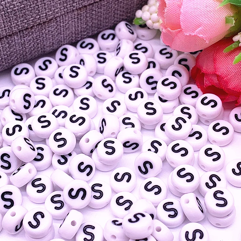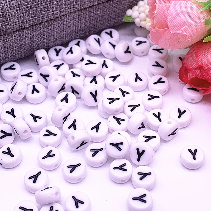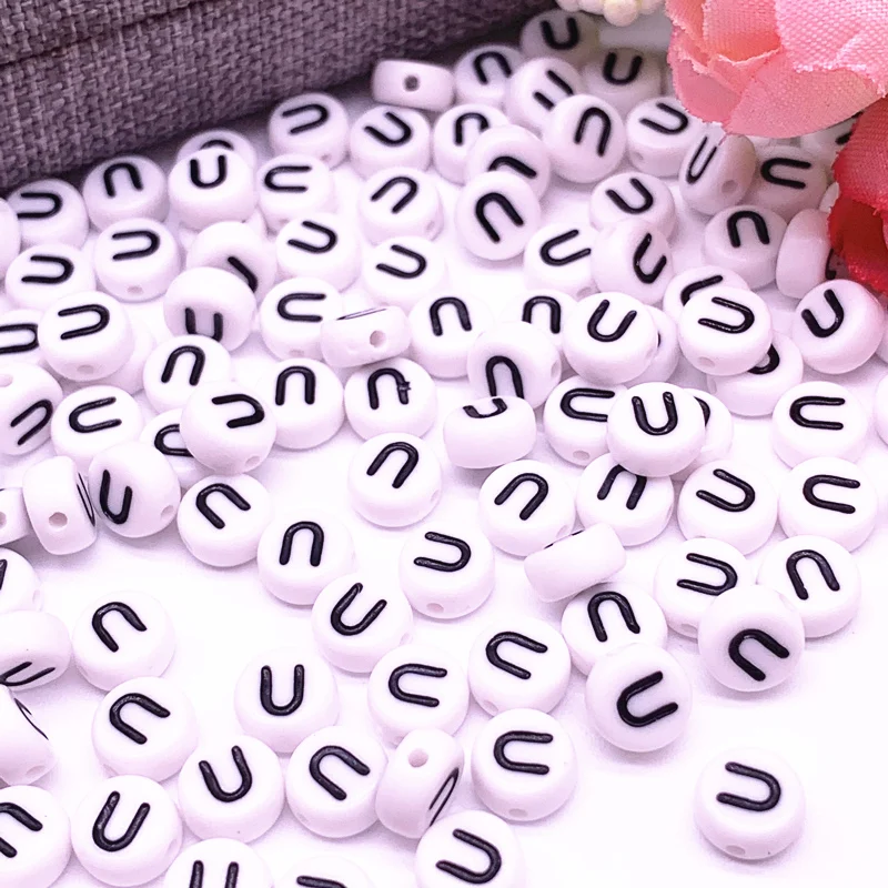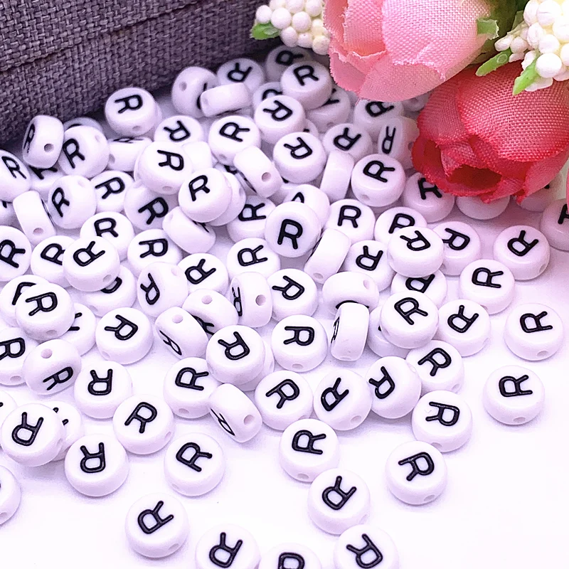 Color: Orange - 100pcs/lot 7x4mm 26 Letter Beads Round Shape Beads Alphabet Letter Charms for Make Jewelry Accessories