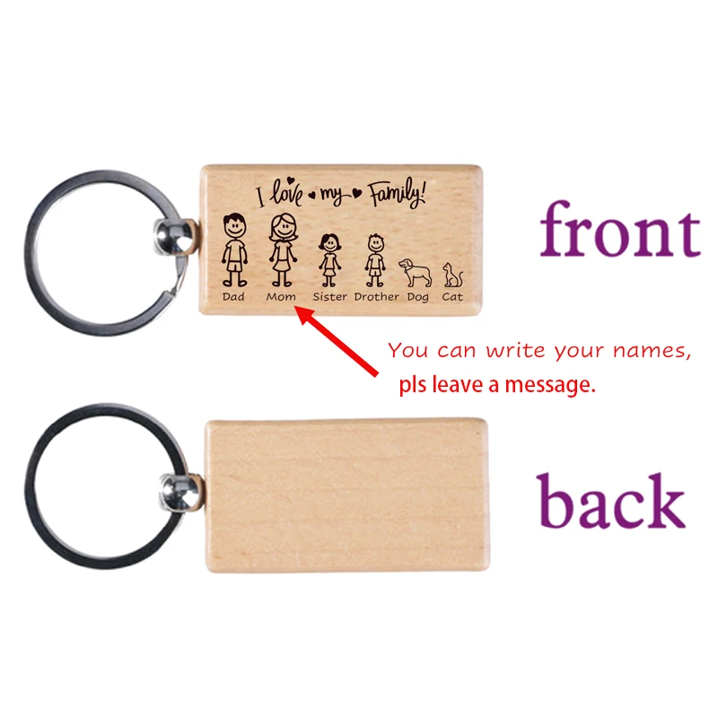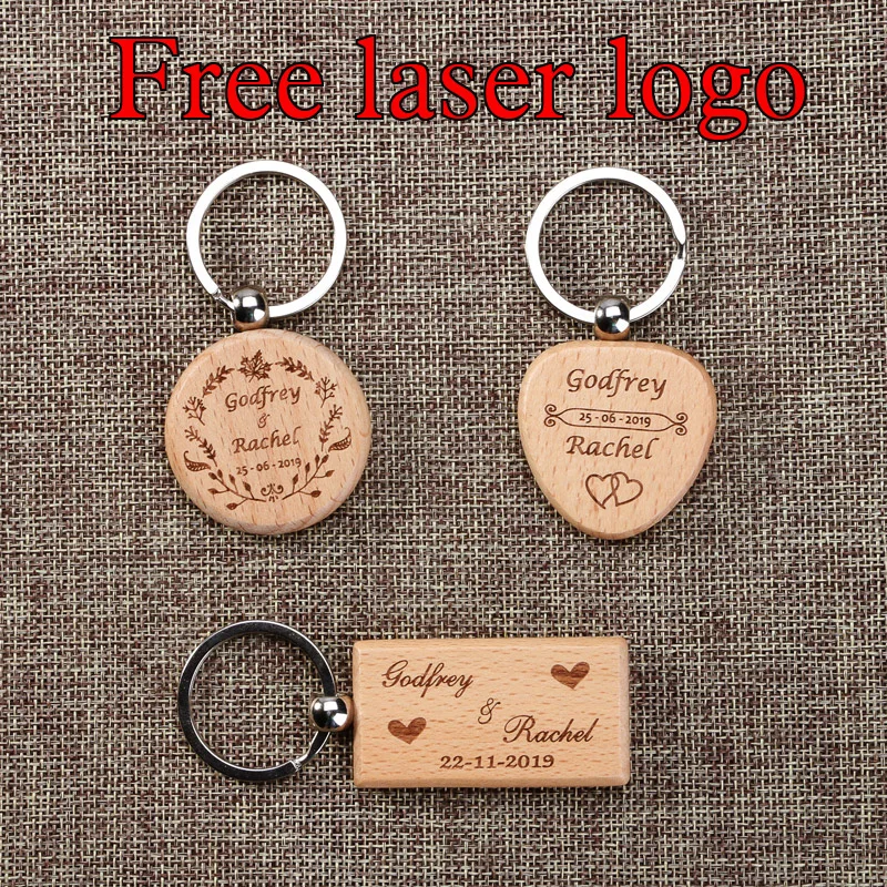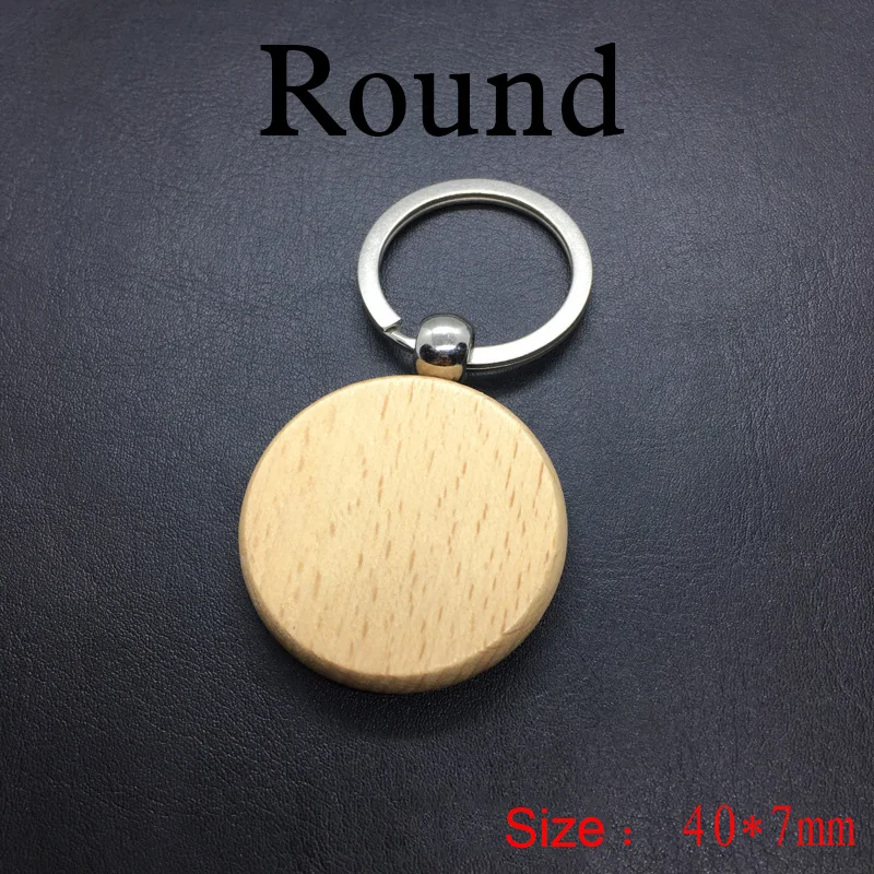 Color: Orange - 2024 Custom Logo Blank Round Rectangle Wooden Key Chain DIY Promotion Wood Keychains Wedding Gift