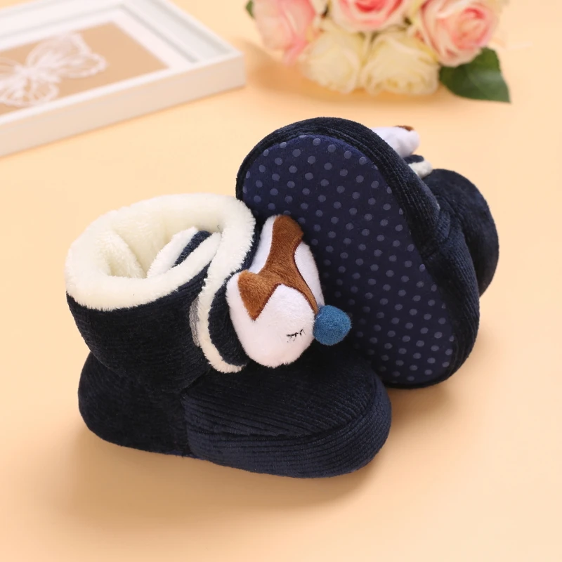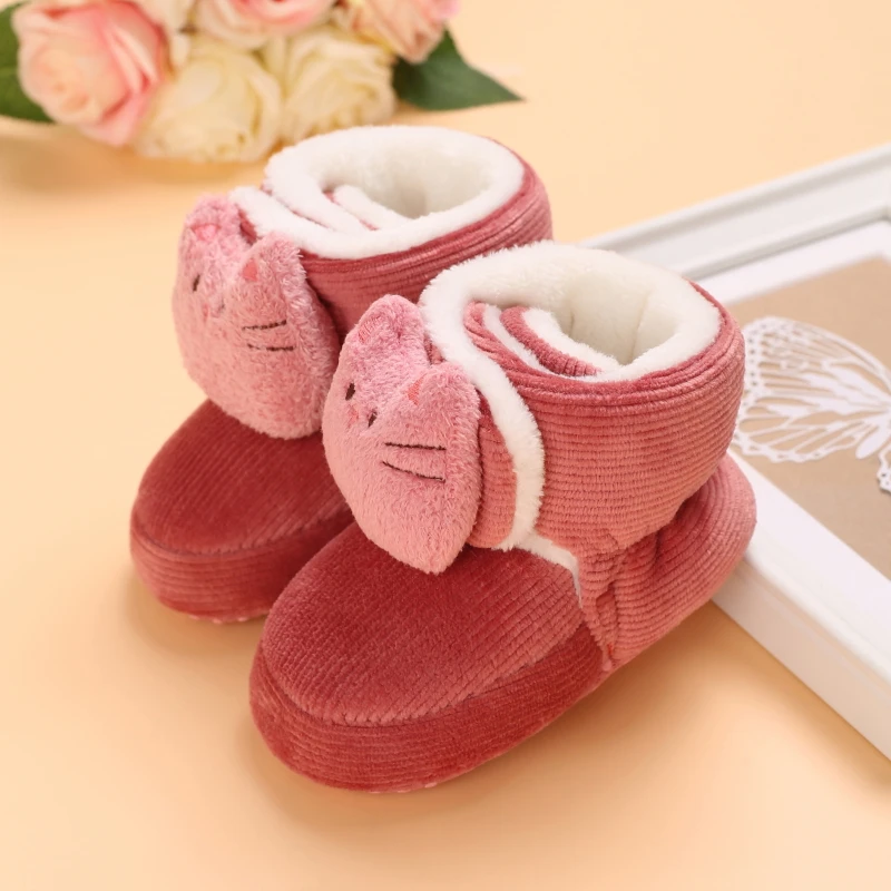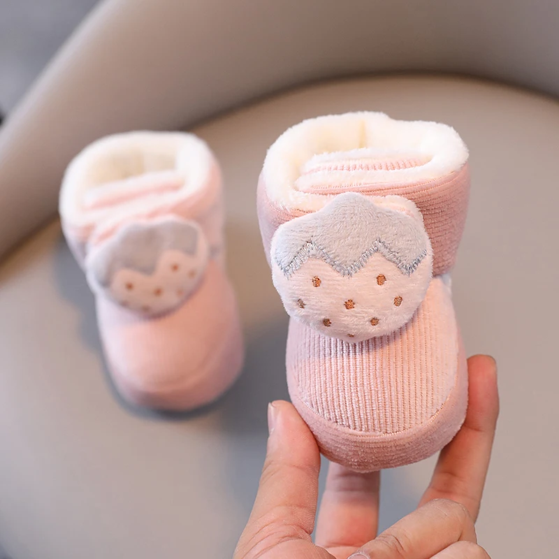 Color: Orange, Baby Age: 0-6 Months - Winter New Cute Cartoon Baby Booties Boy Girl Boots Cotton Soft-Sole Non-Slip Warm Toddler First Walkers Infant Crib Shoes