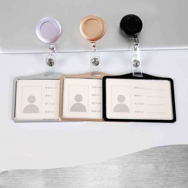 Color: Orange/Black - Aluminum Alloy Card Cover Case Women Men Work Name Bank ID Card Holders Business Badge Case Credit Card Badge Case Bag Pouch