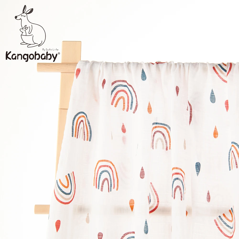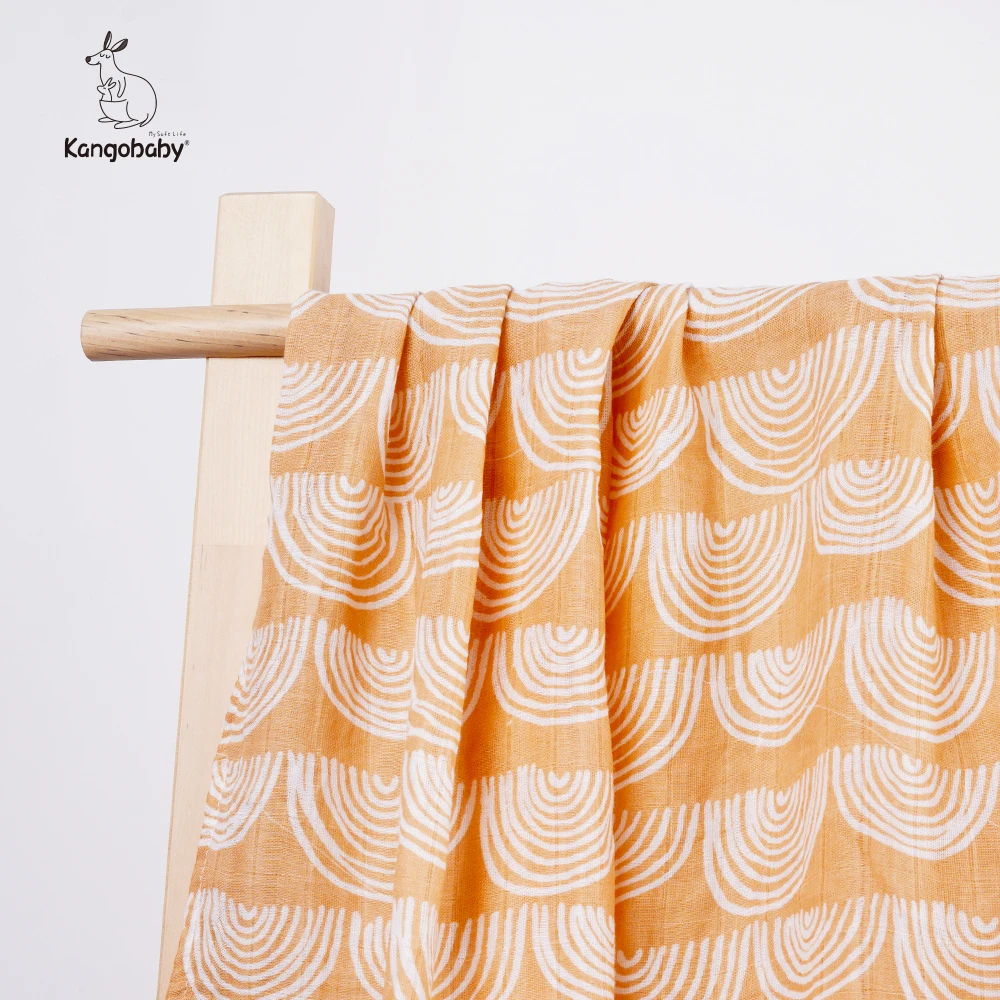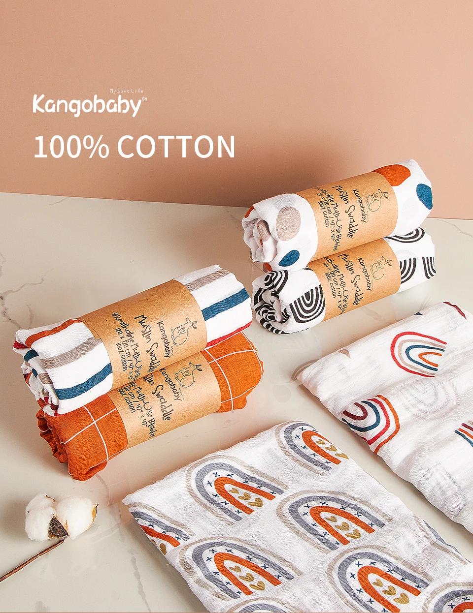 Color: Orange - Kangobaby New Design 2pcs Set Double Layers 100% Cotton Newborn Baby Muslin Swaddle Blanket