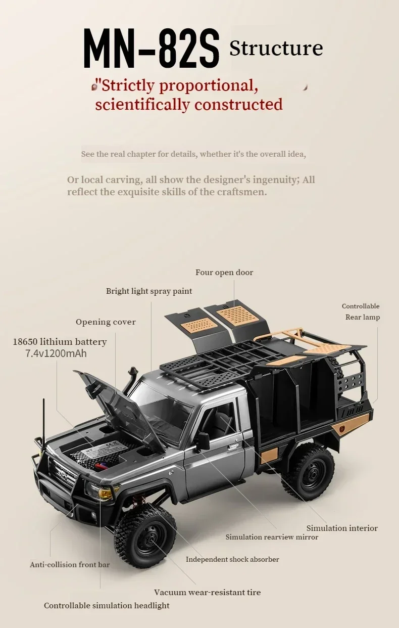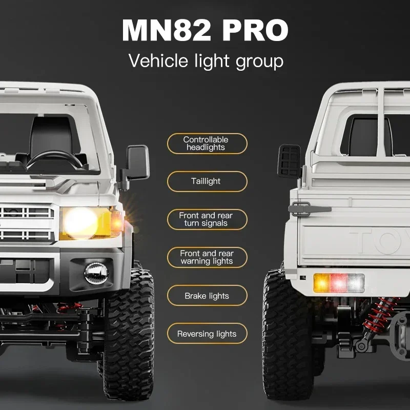 JJRC 1:12 Full Scale RC CAR MN82 Upgraded MN82 PRO Controllable Headlights 2.4G 4WD Off-Road Car Pick Up Truck Toy for Kids Gifts