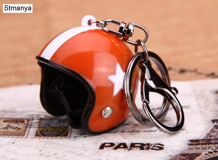Color: Orange - New Motorcycle Helmets Key chain Women men Cute Safety Helmet Car Keychain Bags Hot Key Ring gift Jewelry wholesale 17022