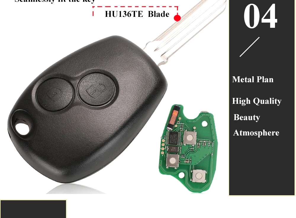Color: Orange, Number of Buttons: 4 Buttons - jingyuqin 2BTN Remote Key For Renault Duster Modus Clio 3 Twingo DACIA Logan Sandero Kangoo 433MHz PCF7946 PCF7947 pcf7952E Chip