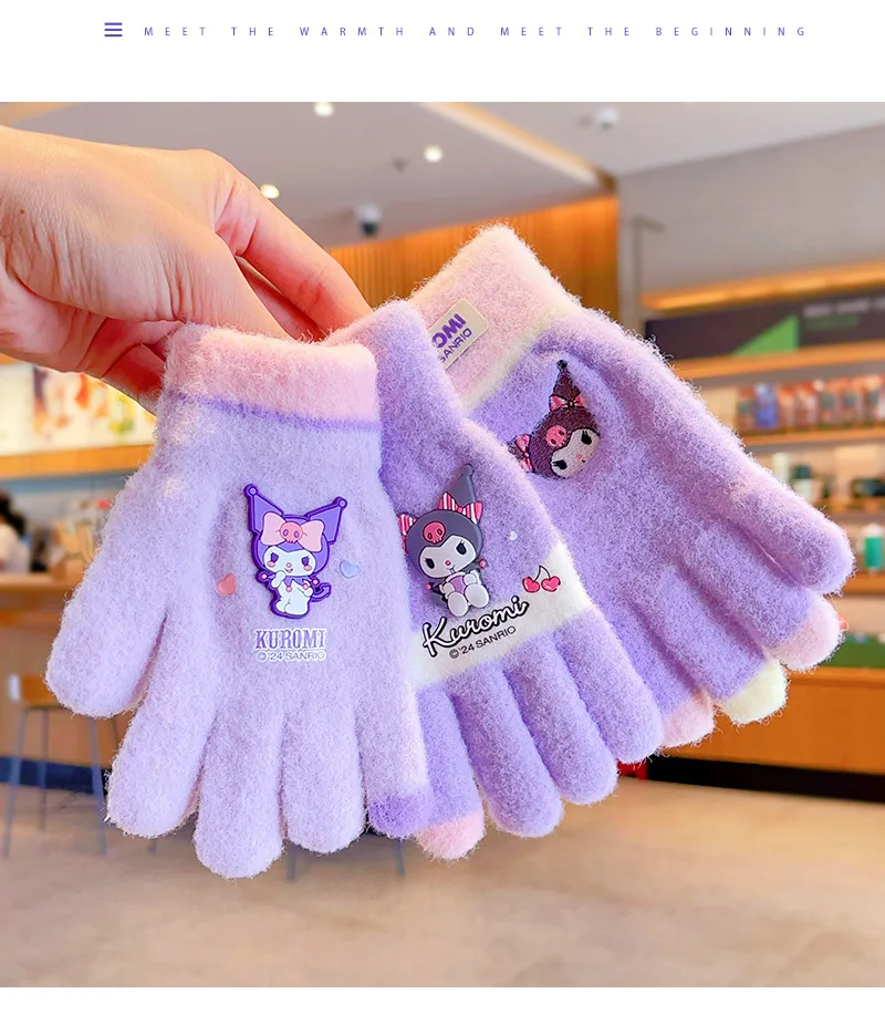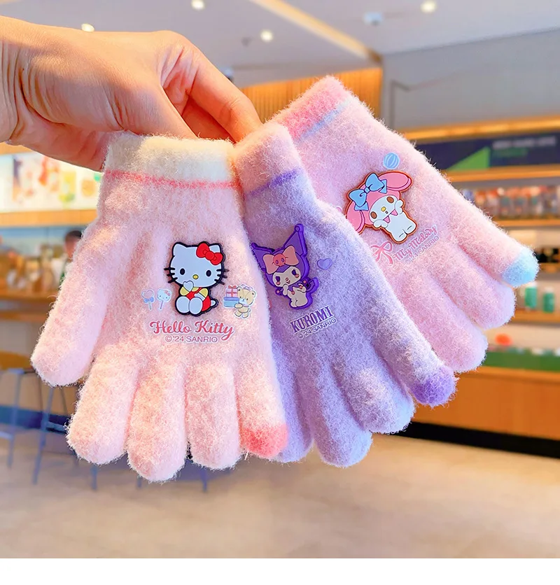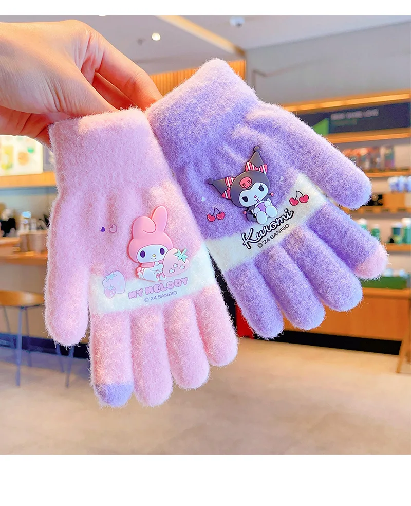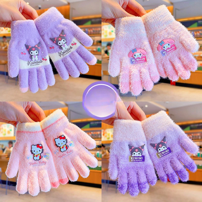 Color: Orange - Sanrio Gloves Kawaii My Melody Kuromi Cold-Proof Winter Finger Gloves Plush Screen Touch Warm Children Toddler Christmas Gifts