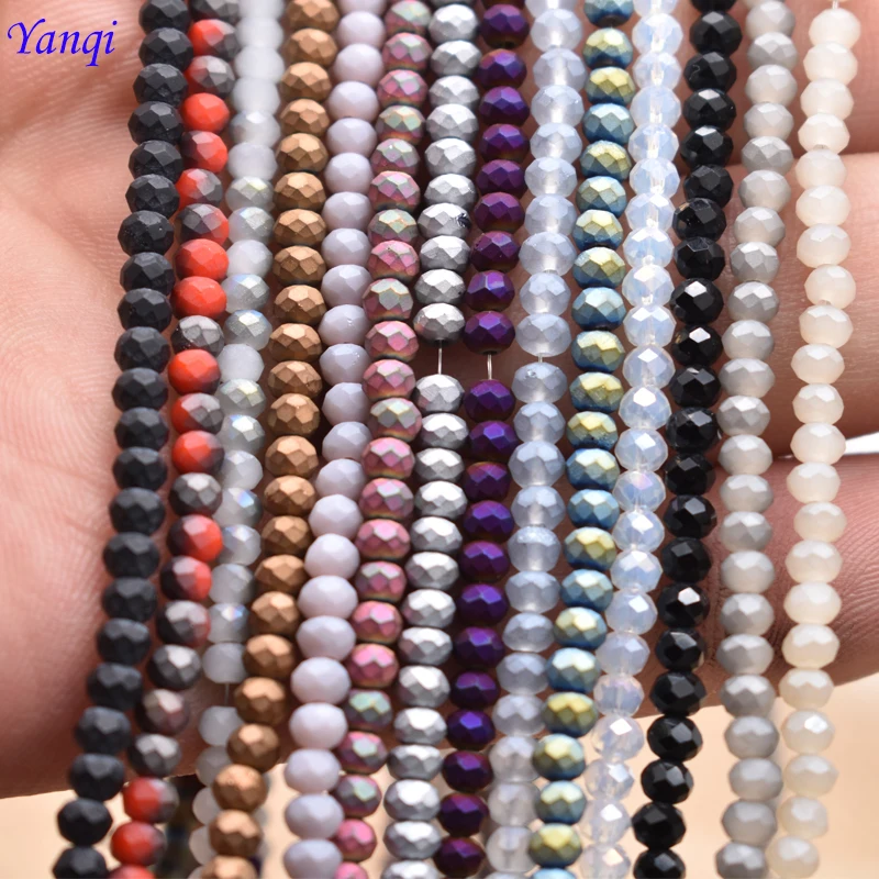 Color: Orange - Shining Red Purple White color 2*2mm 160pcs Rondelle Austria faceted Crystal Glass Beads Loose Spacer Beads for Jewelry Making