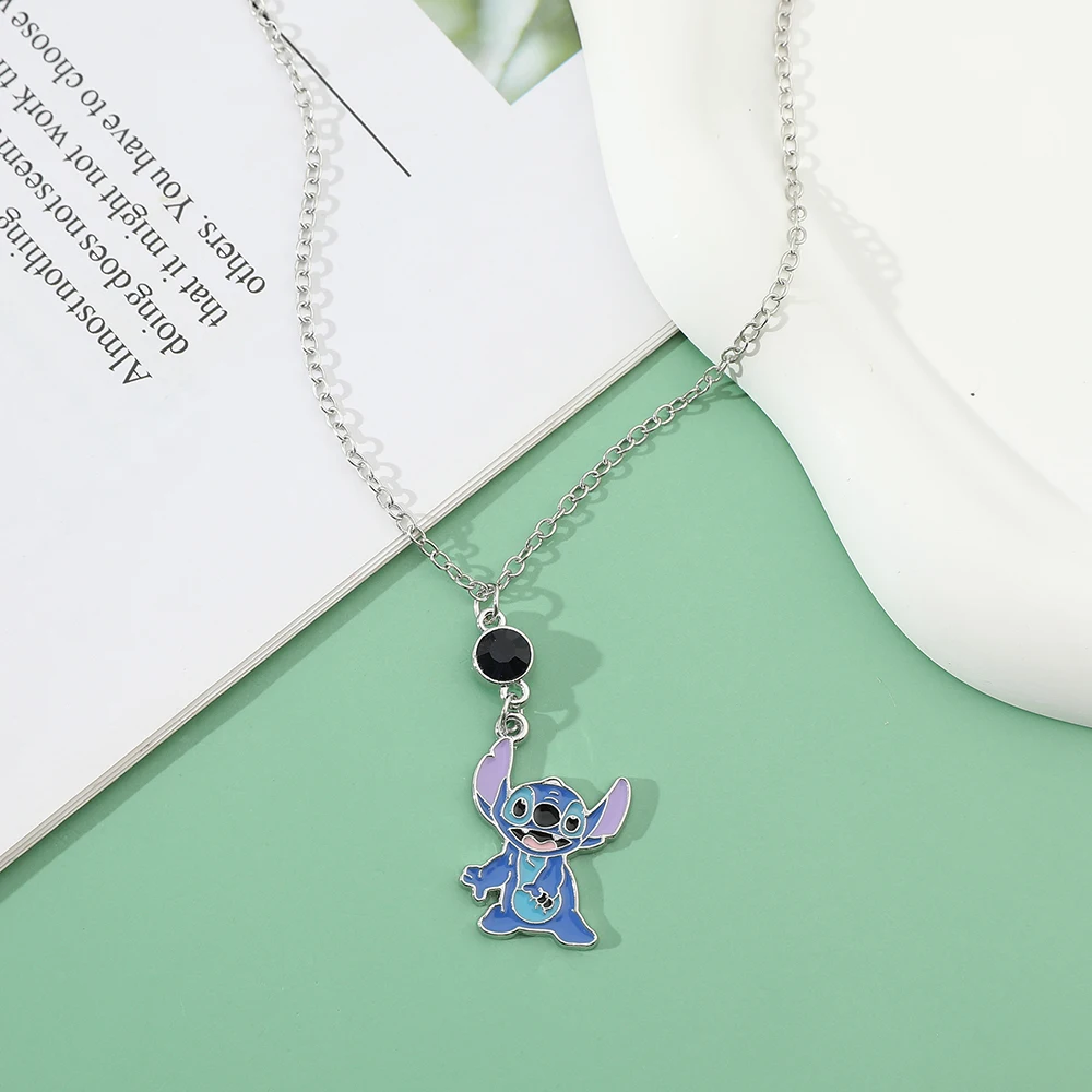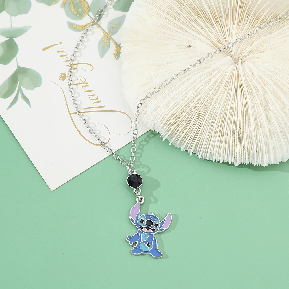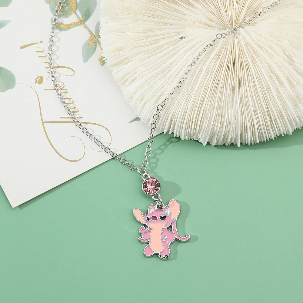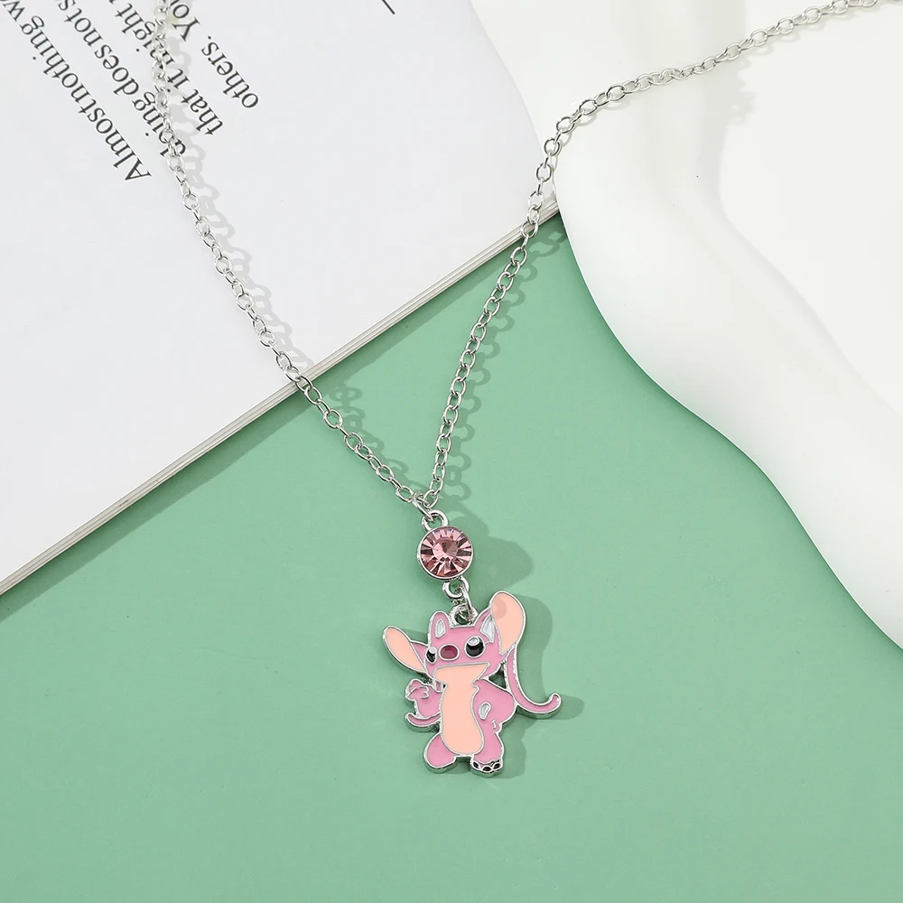 Color: Orange, Ships From: CHINA - Disney Cartoon Lilo & Stitch Pendant Necklace Kawaii Stitch Angel Crystal Necklace for Women Charm Jewelry Accessories Toy Gift