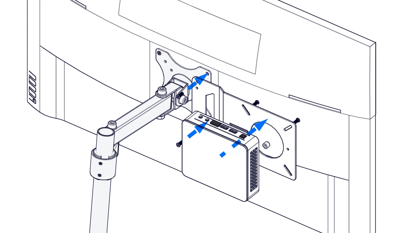 With this bracket, you can hang Macmini behind the monitor.