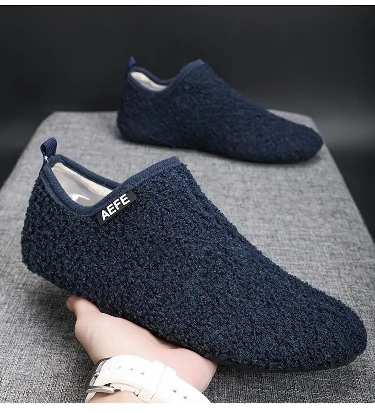Color: Orange, Shoe Size: 43, Ships From: CHINA - Winter Fashion Men Slippers Plush Male Home Cotton Shoes Warm Anti-slip Men's Casual Shoes Flexible Solid Flats 39-47 Slip On