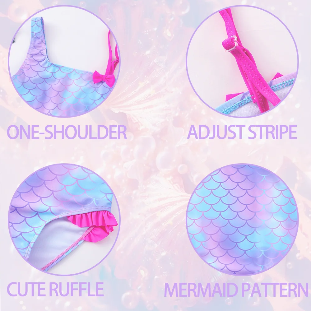 One-piece girls swimsuit, fish scales Designed with a cute ruffle hips.