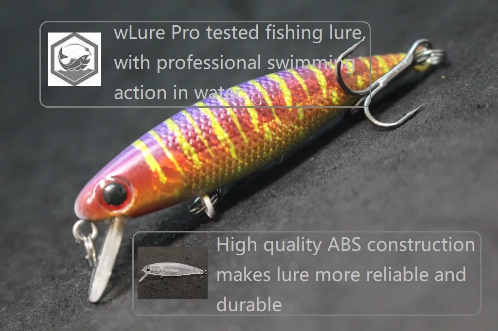 This 6 cm lure is a great addition to any angler's tackle box. With a body length of 5.5 cm and weighing only 3.5 g, this shallow diving lure is perfect for targeting fish in shallower waters. Its wide wobbling action is sure to attract fish, and its slow sinking speed allows for a more natural presentation. Made with high quality ABS construction, and finished with an epoxy coating, this lure is built to last. The black nickel round bend treble hooks ensure a secure hookset, while the tank testing guarantees its effectiveness. With a hook size of 8, this lure is ideal for catching smaller fish species.