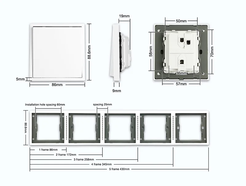 Color: Orange - YINKA Plastic Panel Korean Standard Switch Frame Wall Switch Wall Socket TV Satellite 220V 1234GANG DIY Plastic Frame Part White