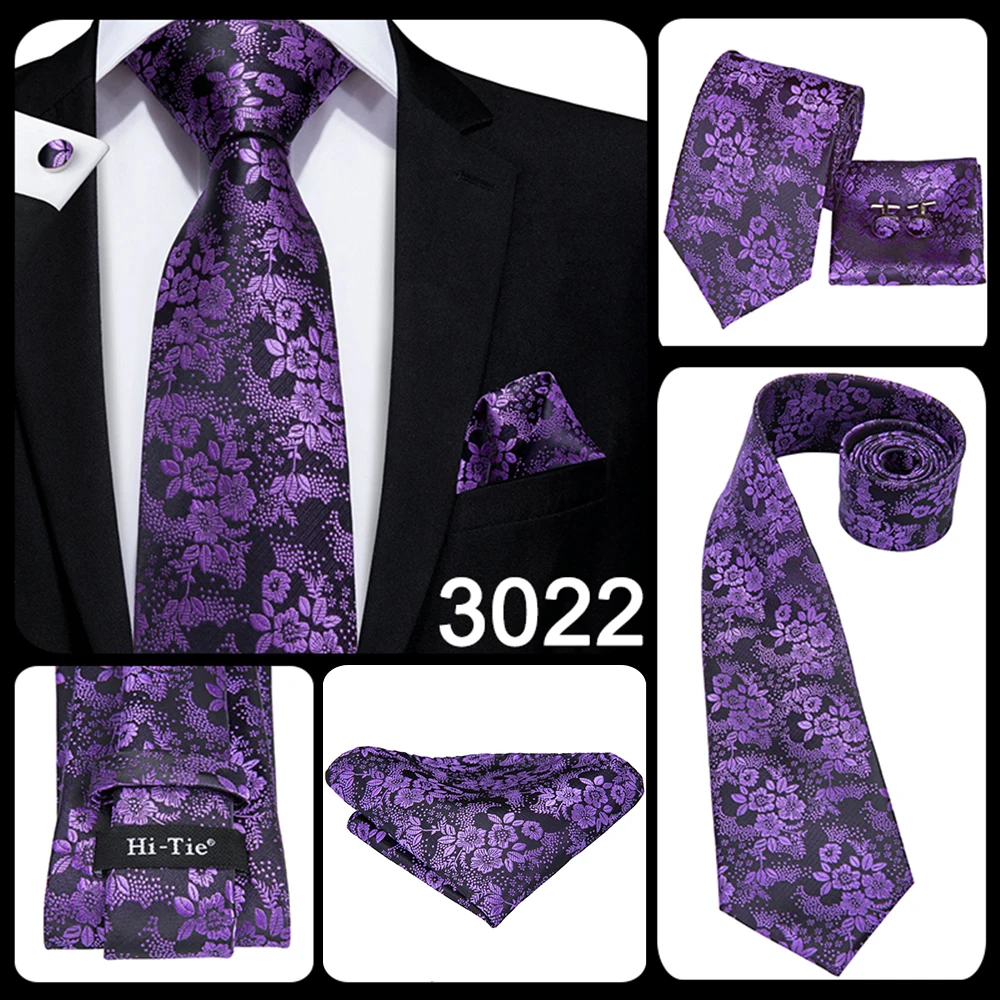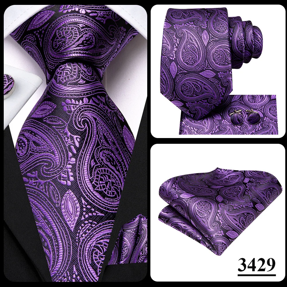 Color: Other - Hi-Tie Purple Paisley Silk Elegent Tie for Men Novelty Design Handky cufflink Tie Set Party Business Wedding Dropshipping