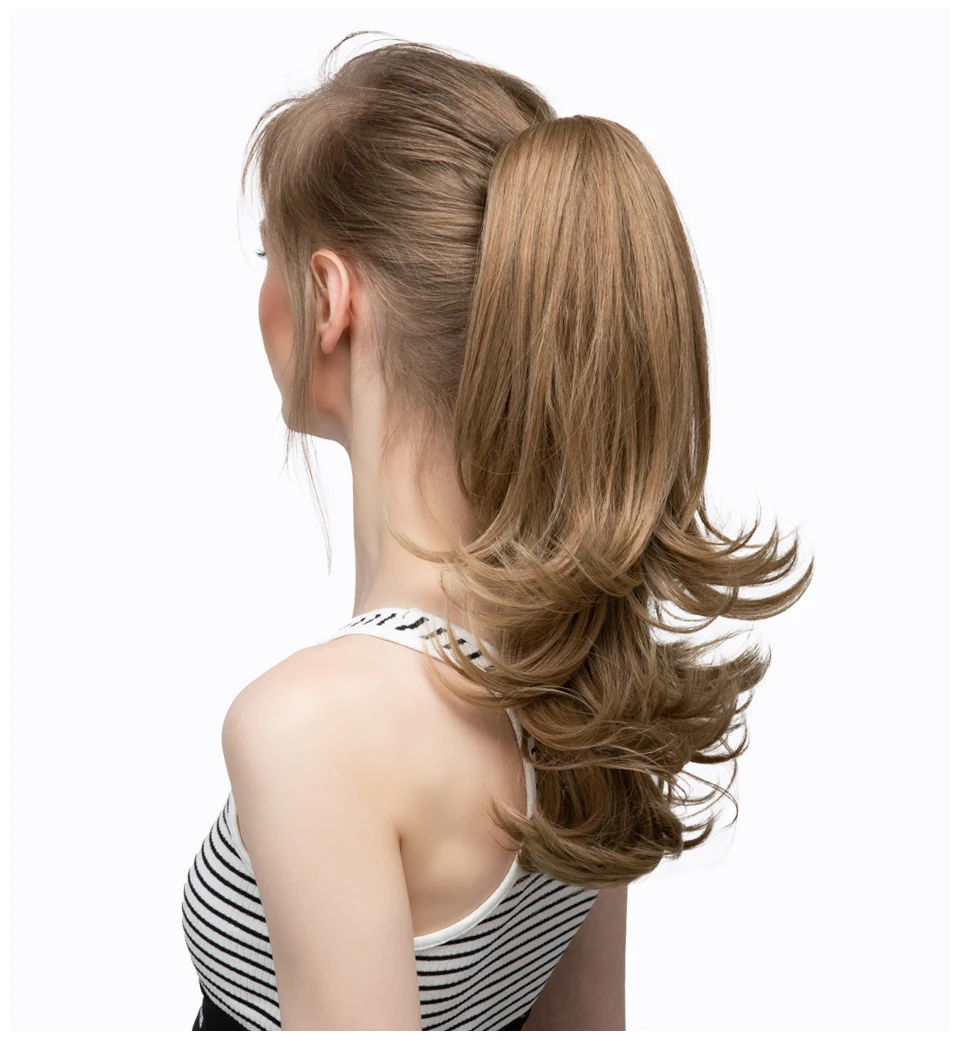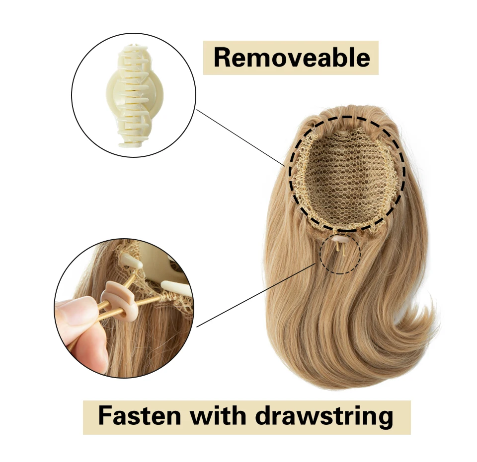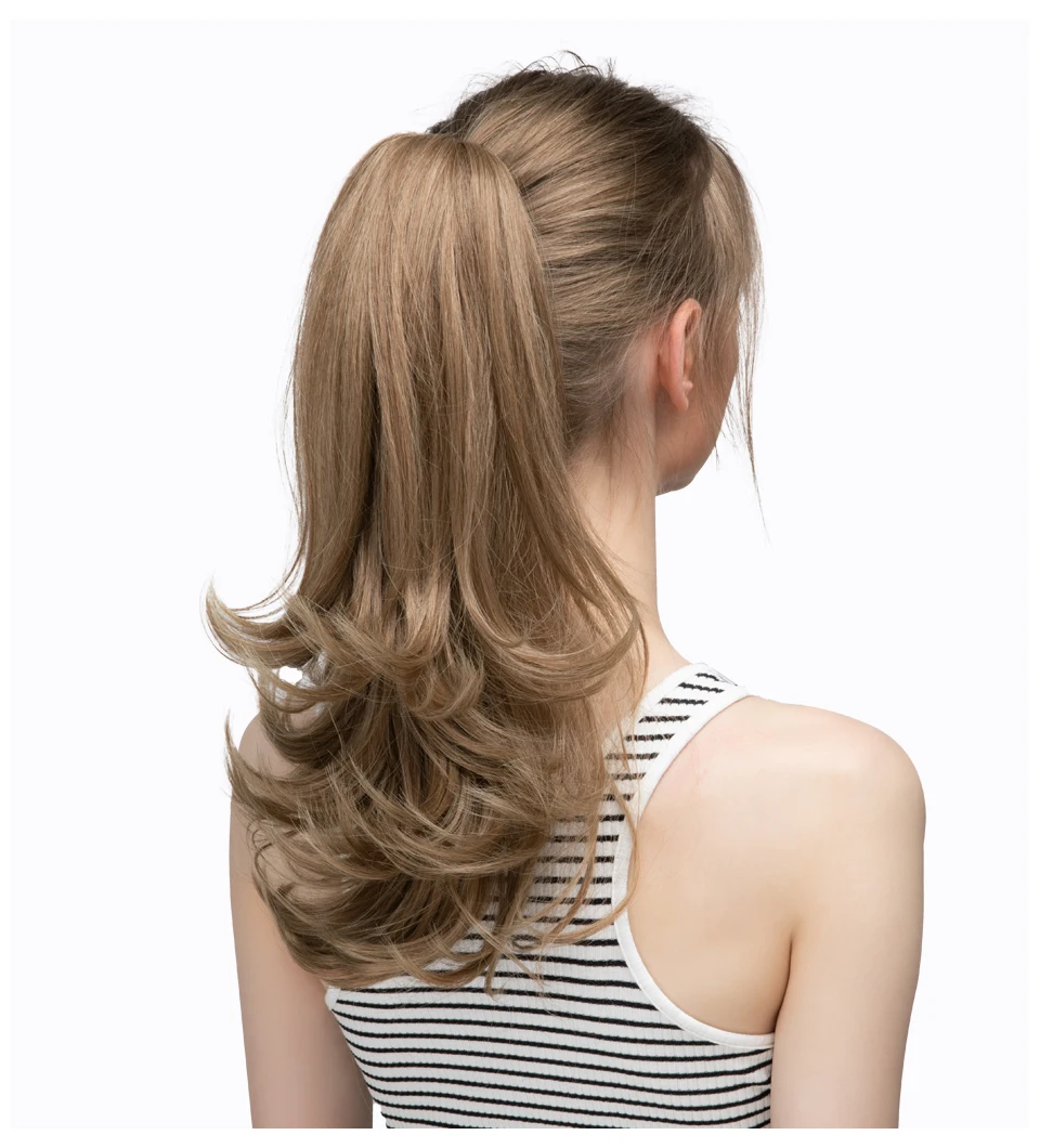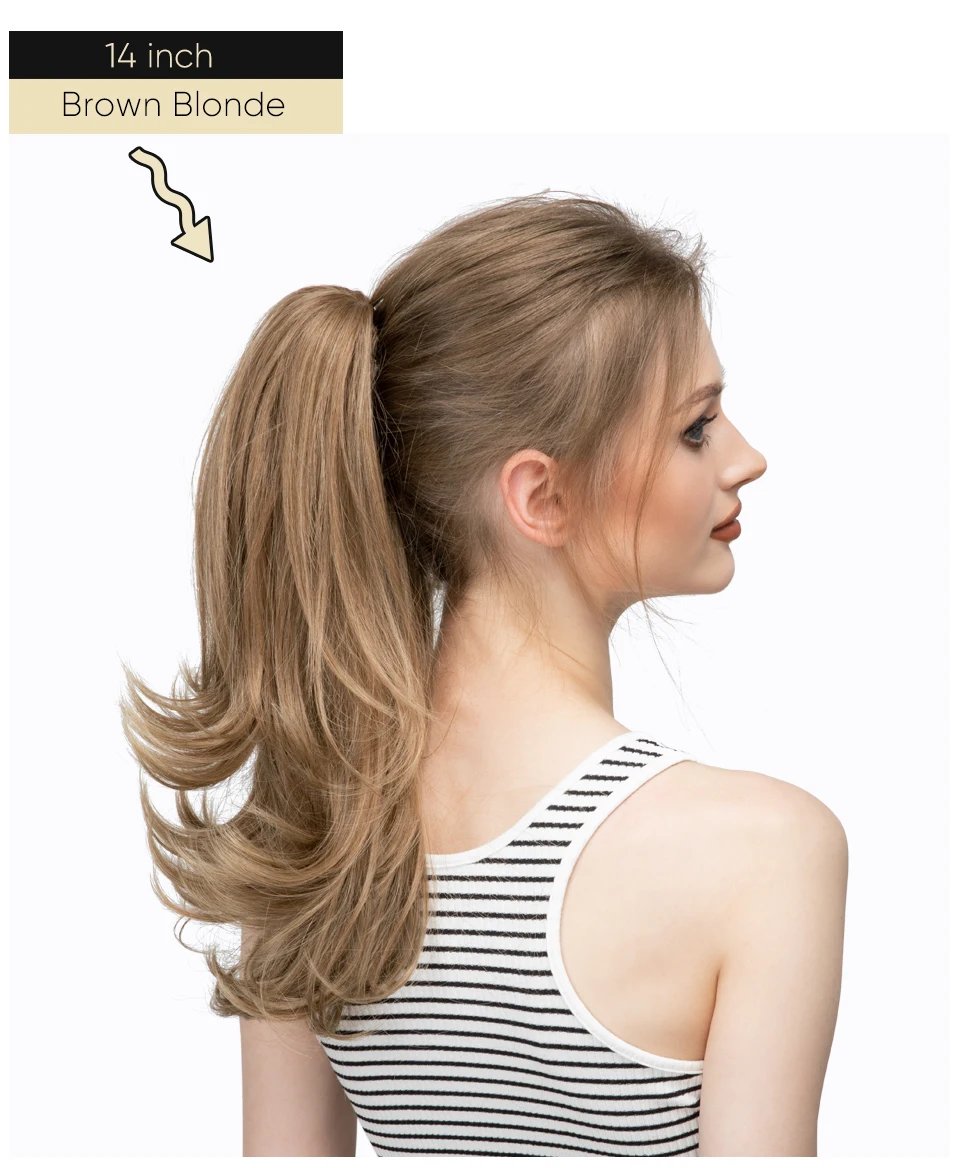 Color: P1B/613, Stretched Length: 14inches - Synthetic Claw Clip In Ponytail Hair Extensions 14 Inch Wavy Hairpiece Fake Blonde Black Hair False Pigtail With Elastic Band