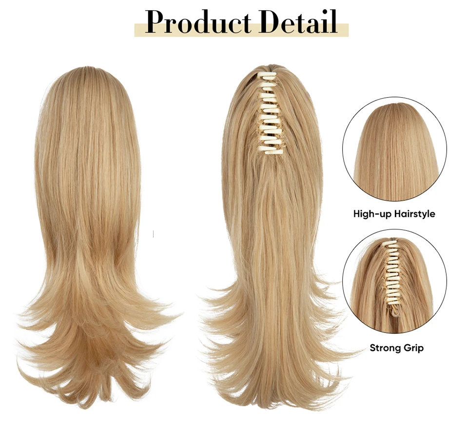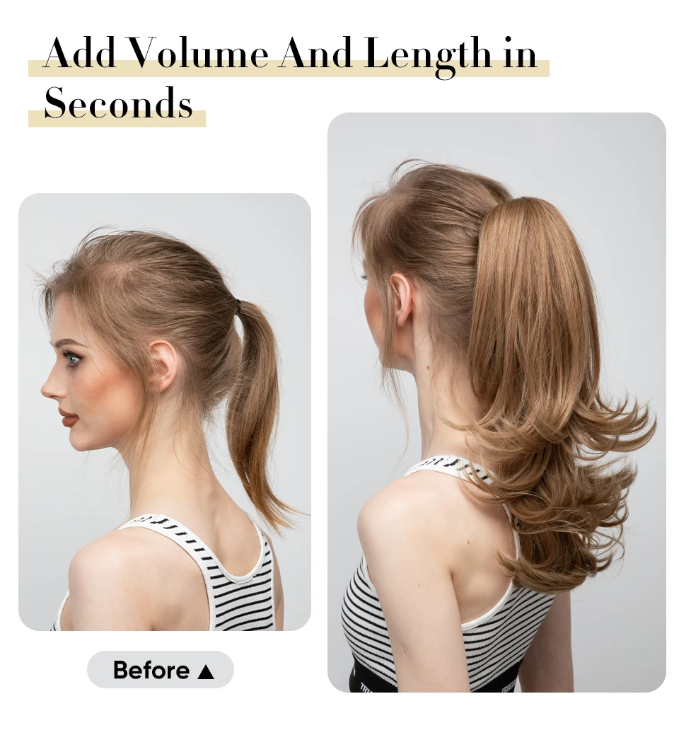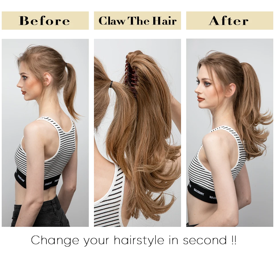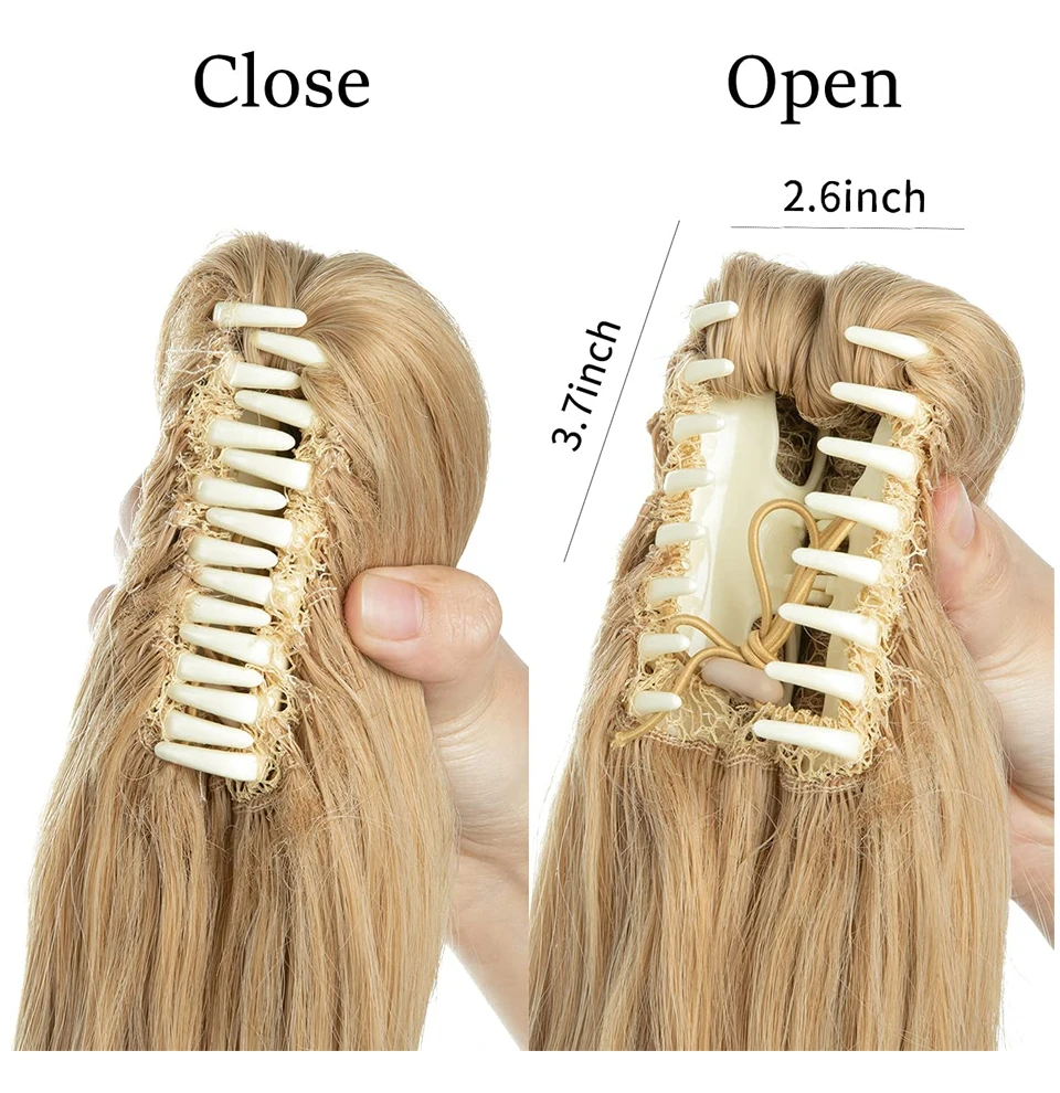 Color: P1B/613, Stretched Length: 14inches - Synthetic Claw Clip In Ponytail Hair Extensions 14 Inch Wavy Hairpiece Fake Blonde Black Hair False Pigtail With Elastic Band
