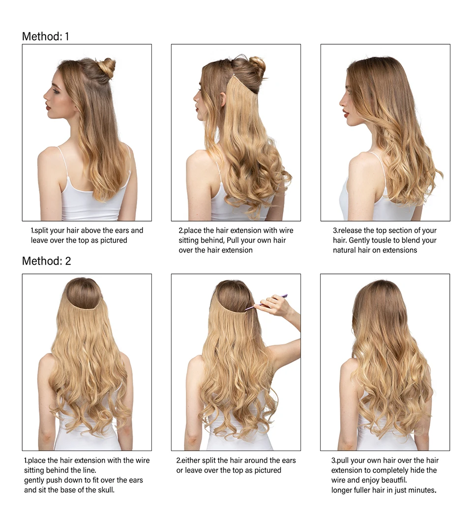Design with hair on a wire,offers an innovative hair extension that adds length and volume to your own hair in less than one minute!!