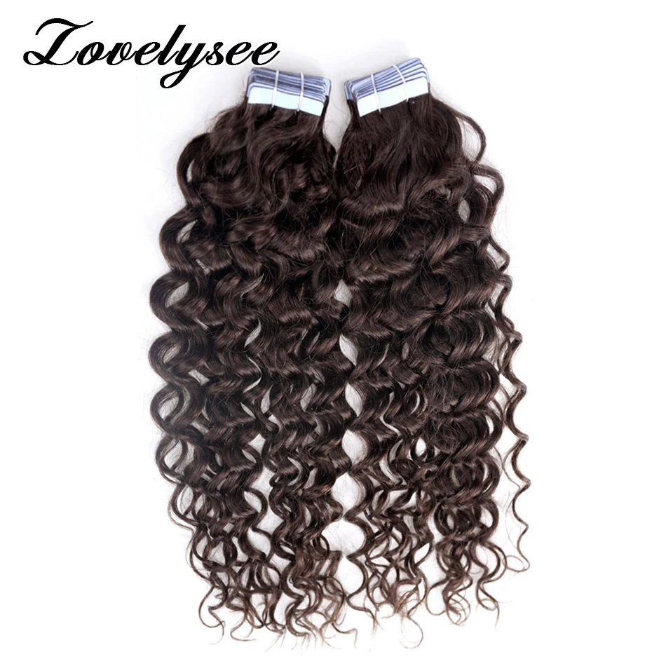 Color: P6/27, Length: 18 inches, Items per Package: 40 pcs - Water Wave Tape in Human Hair Extensions 2g/pcs Dark Brown Real Human Hair Adhesive Invisible Keratin Hair Extensions for Women