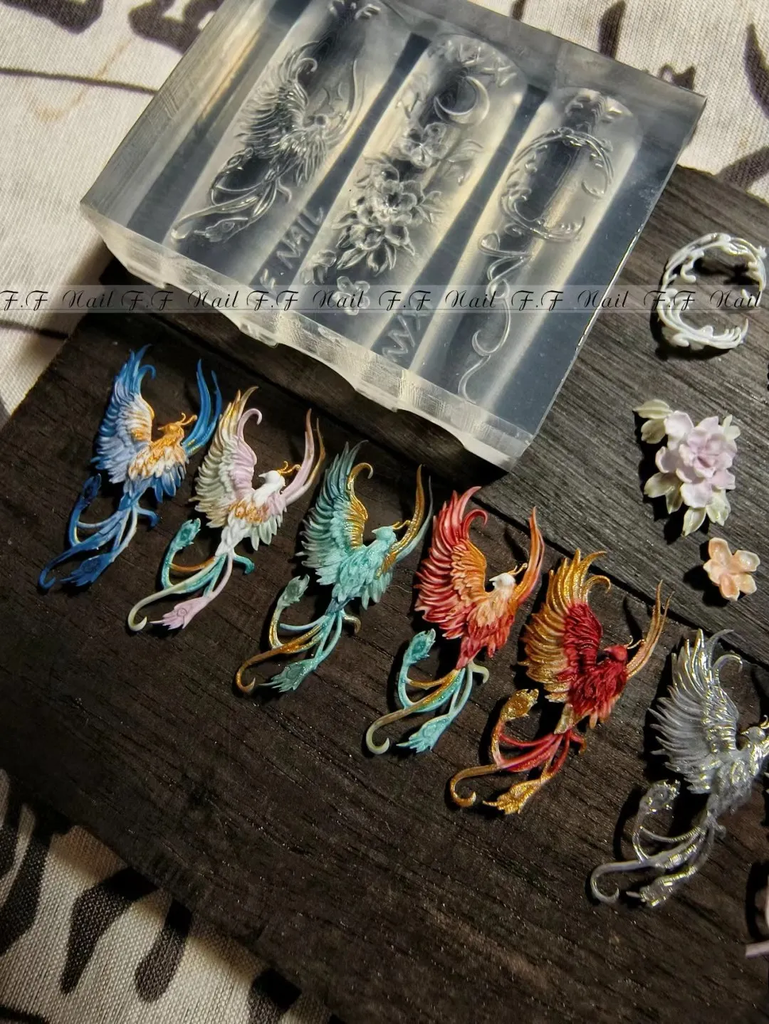 Color: Palegoldenrod - 1pc Snake Flamingo Jellyfish Dragon Dtream 3D Acrylic Mold Nail Art DIY Silicone Nail Art Templates Nails Mold