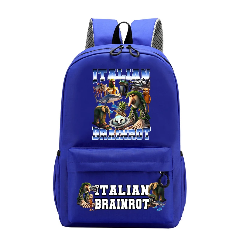 Color: PEACOCK BLUE - Italian Brainrot Kids Cute Schoolbag Tung Tung Tung Sahur Backpack for Boy Funny Meme Anime Knapsack Cartoon Book Bag Gifts 2025