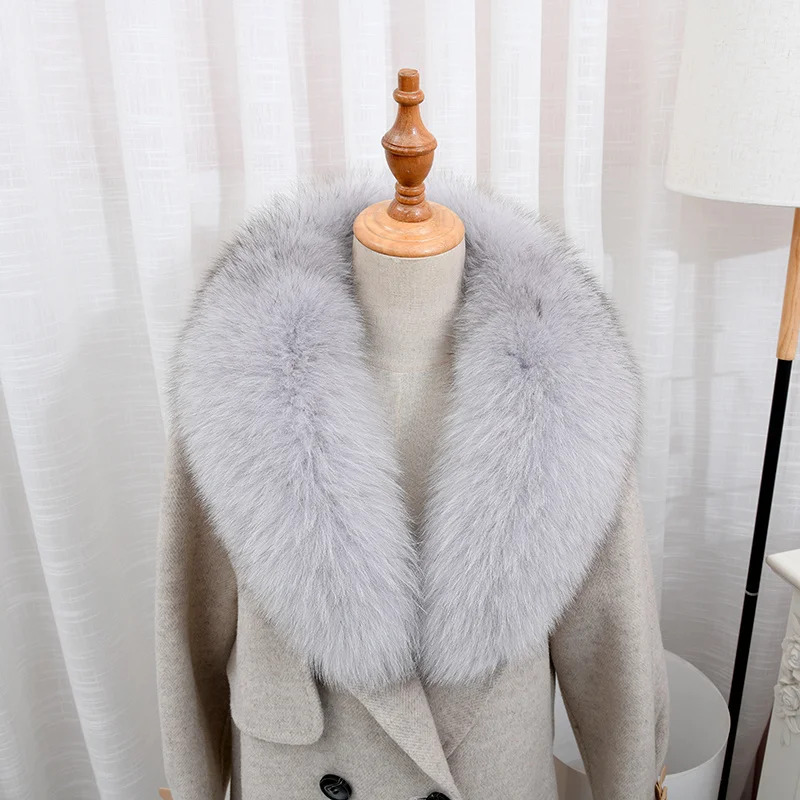 Color: PEACOCK BLUE, Size: XXXL - 100% Natural Real Fox Fur Collar For Women Men Coat Jacket Fur Scarf Winter Extra Large Size Neck Warmer Fur Scarf Shawls Wraps