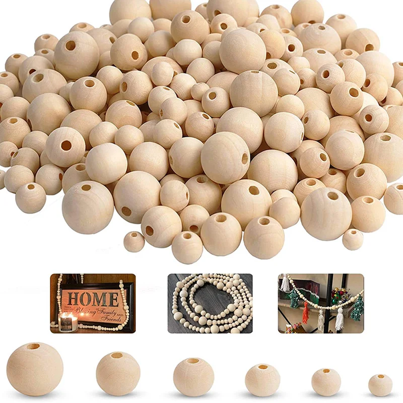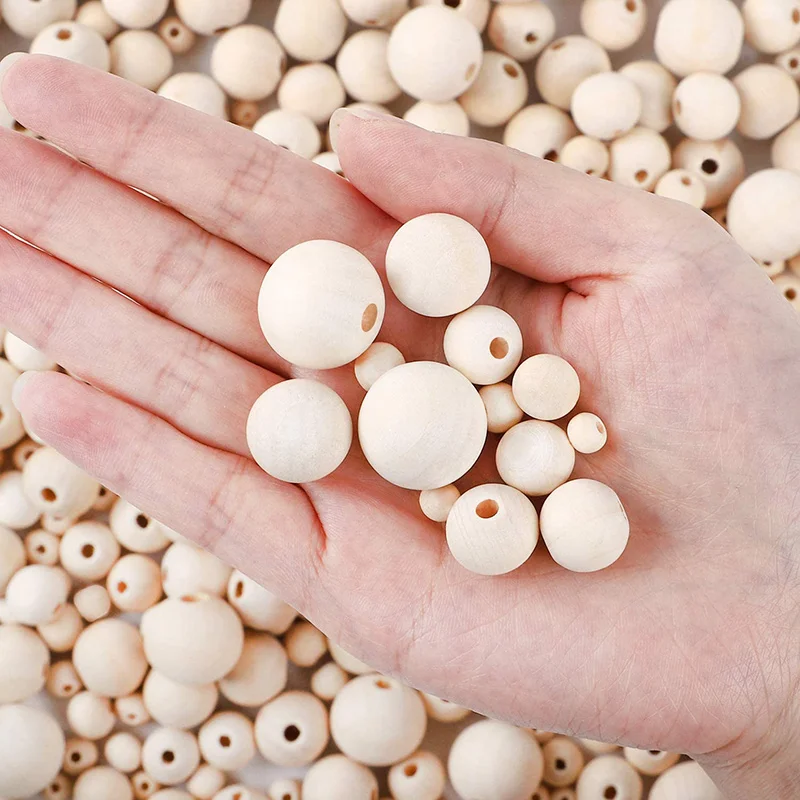2-500Pcs Natural Wooden Beads with Holes 4-30mm Round Spacer Wooden Bead Ball Loose Wood Bead Charm for DIY Handmade Accessories
