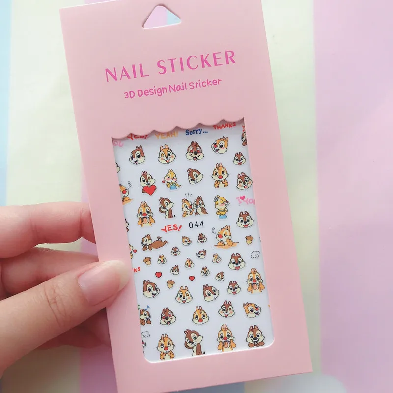 Color: Pink - 1PCS Hello Kitty 3D Nail Stickers Press on Nails Mickey Mouse Donald Duck Stitch Cartoon Stickers Nail Art Decoration