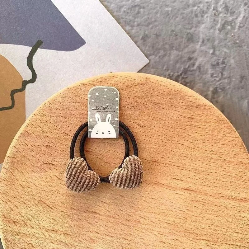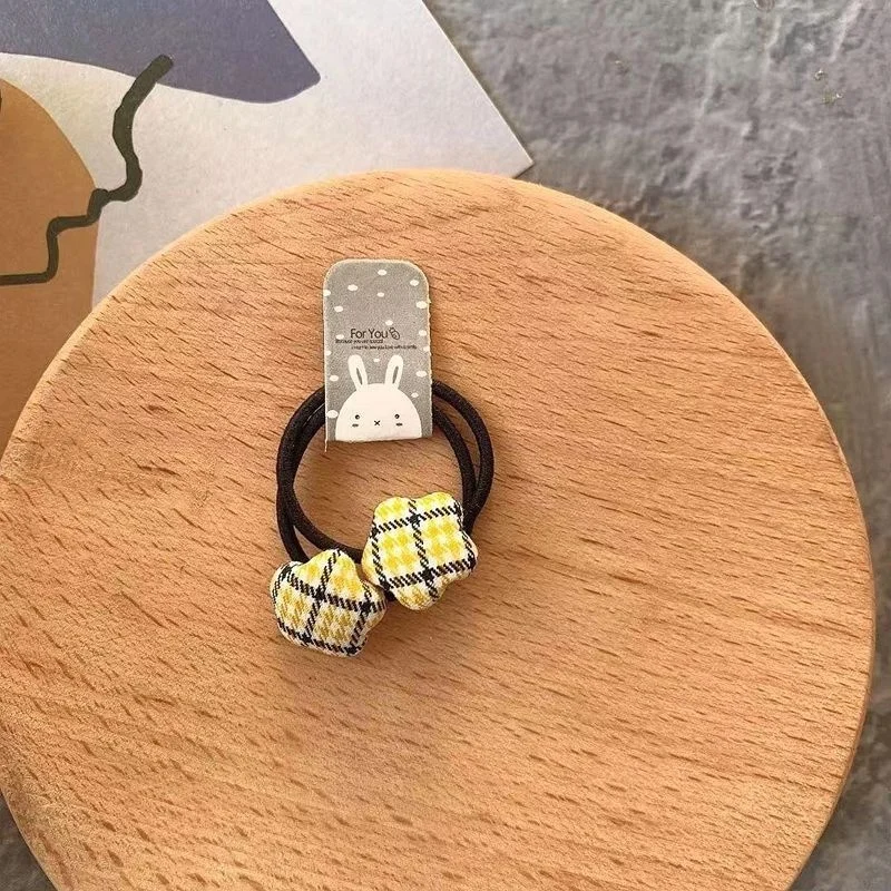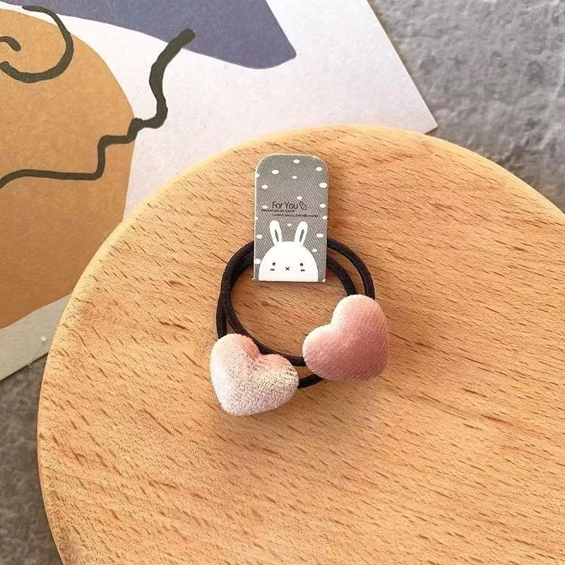 2pcs Velvet Heart Plaid Star Button Elastic Hair Bands Rubber Hair Rope Tie Girls Hair Scrunchie Ponytail Holder Gum Accessories