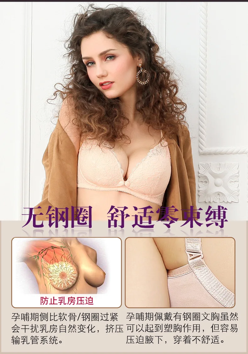 Color: Pink, Bands Size: 34, Cup Size: C - Modern pregnant women's postpartum underwear breast feeding breathable lace front open button pregnant women's breast-feeding
