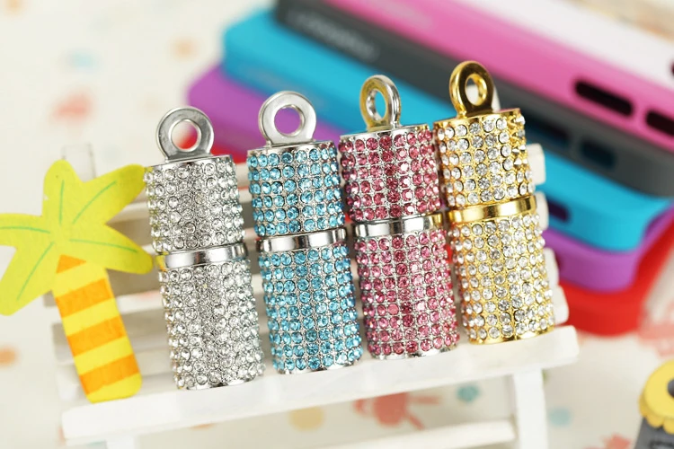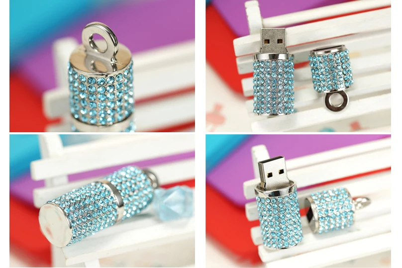 Color: Pink, Capacity: 64GB - JASTER Crystal cylindrical USB Flash Drive fashion metal diamond pen driveu disk pendrive 4GB 8GB 16GB 32GB 64GB memory stick