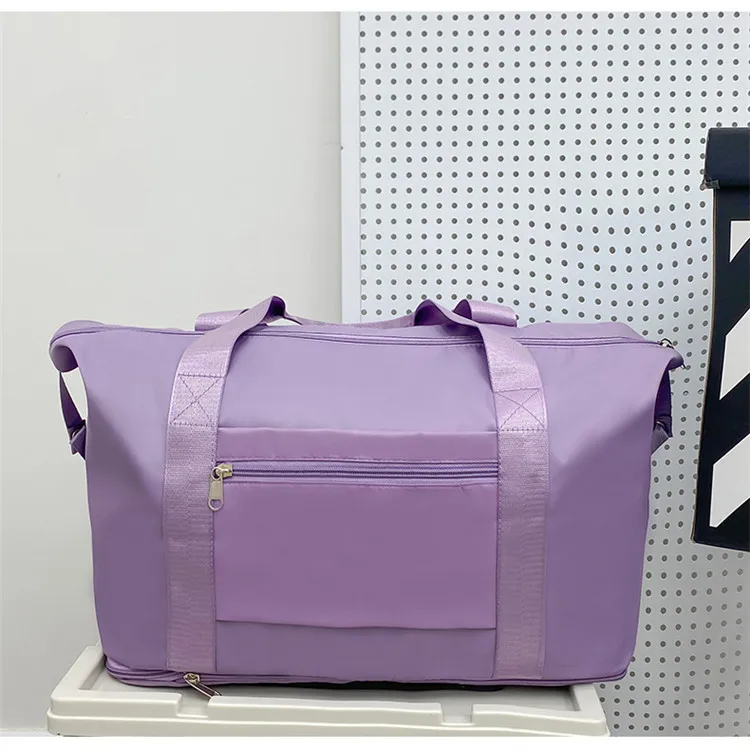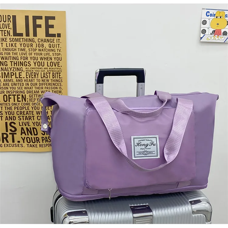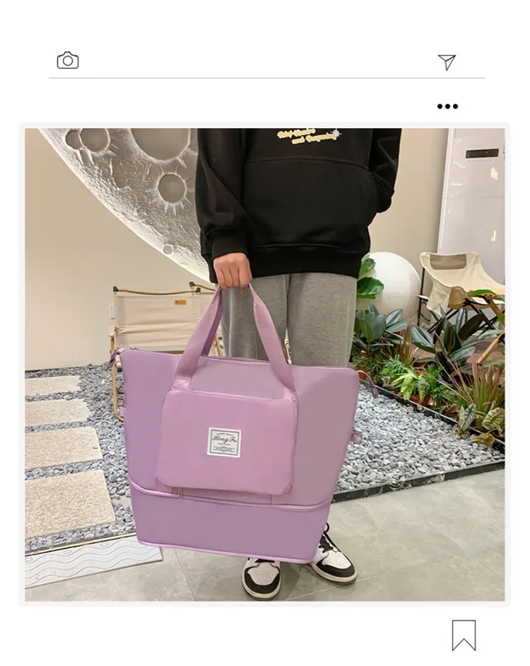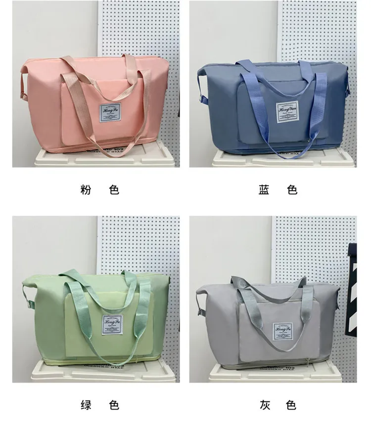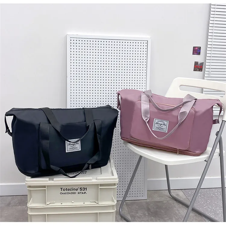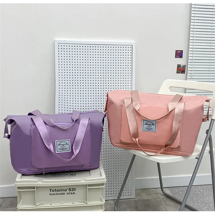 Color: Pink - Double-layer expandable large-capacity luggage bag, new multi-functional foldable portable gym bag, sports travel bag-tan