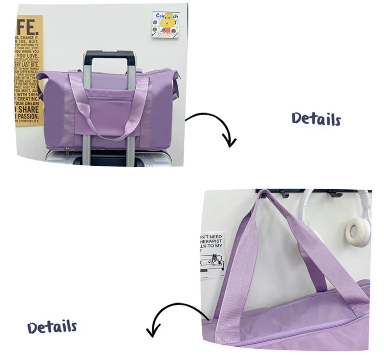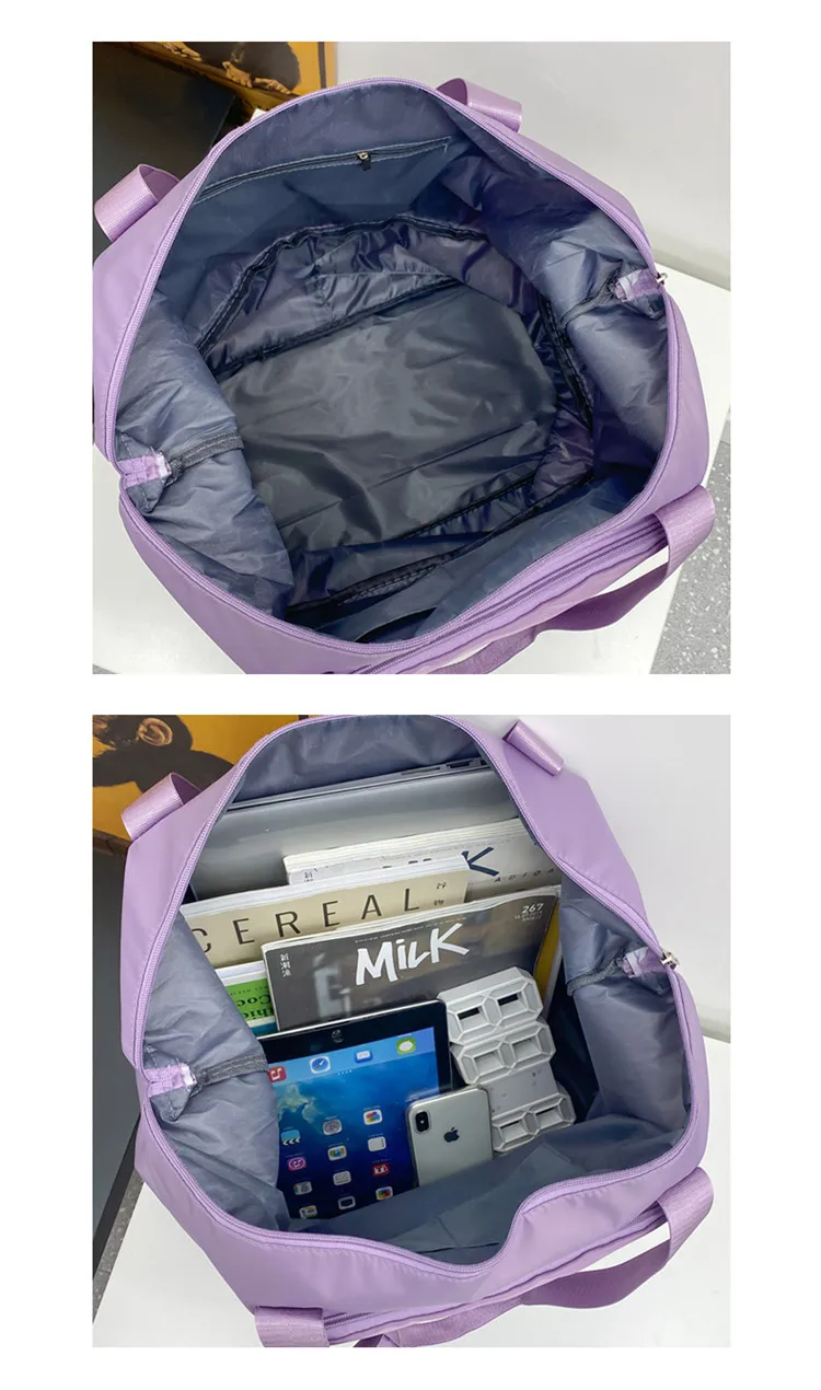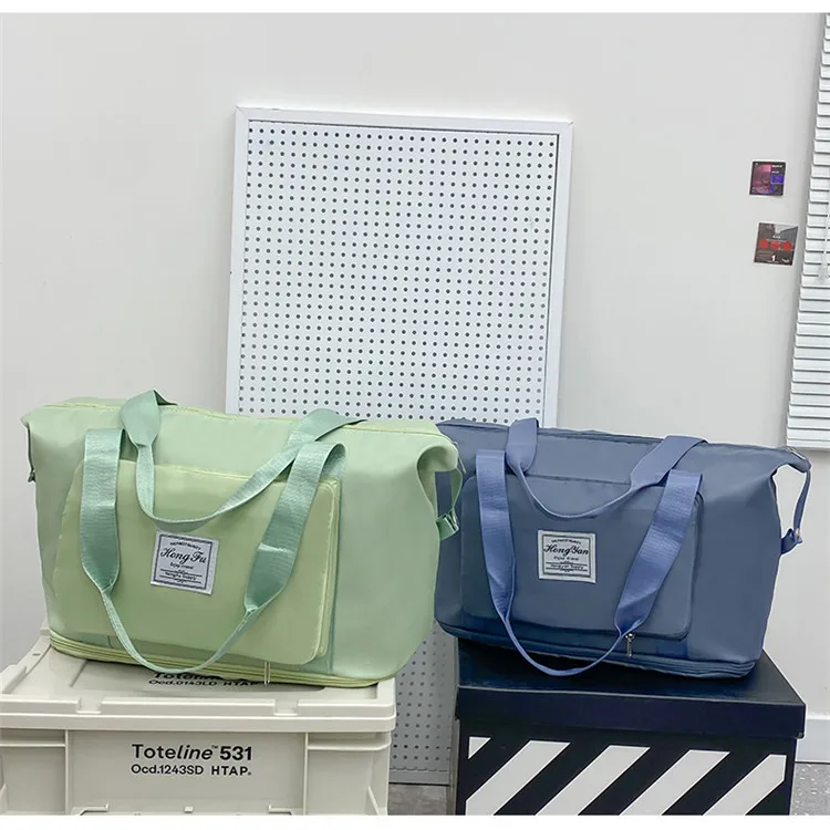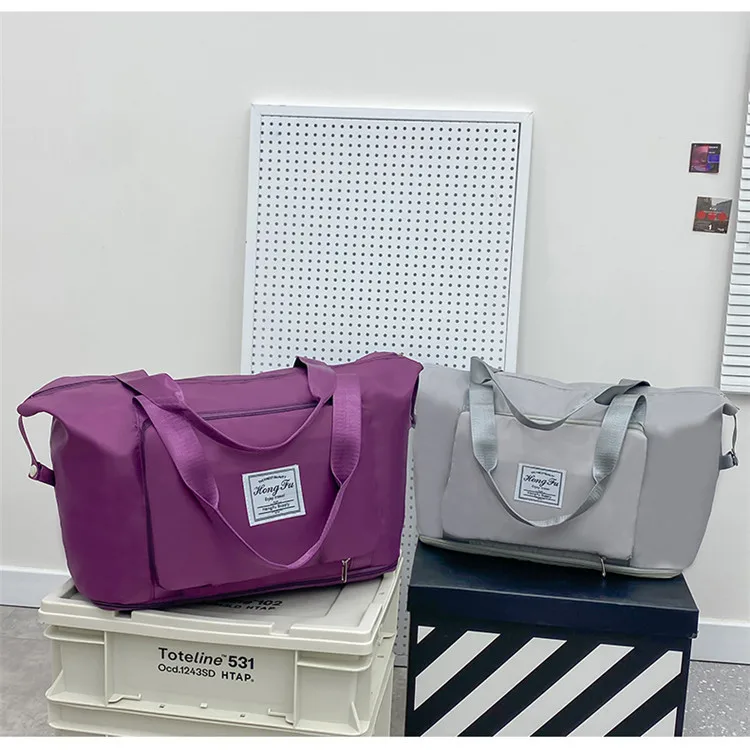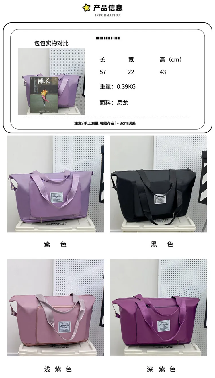 Color: Pink - Double-layer expandable large-capacity luggage bag, new multi-functional foldable portable gym bag, sports travel bag-tan