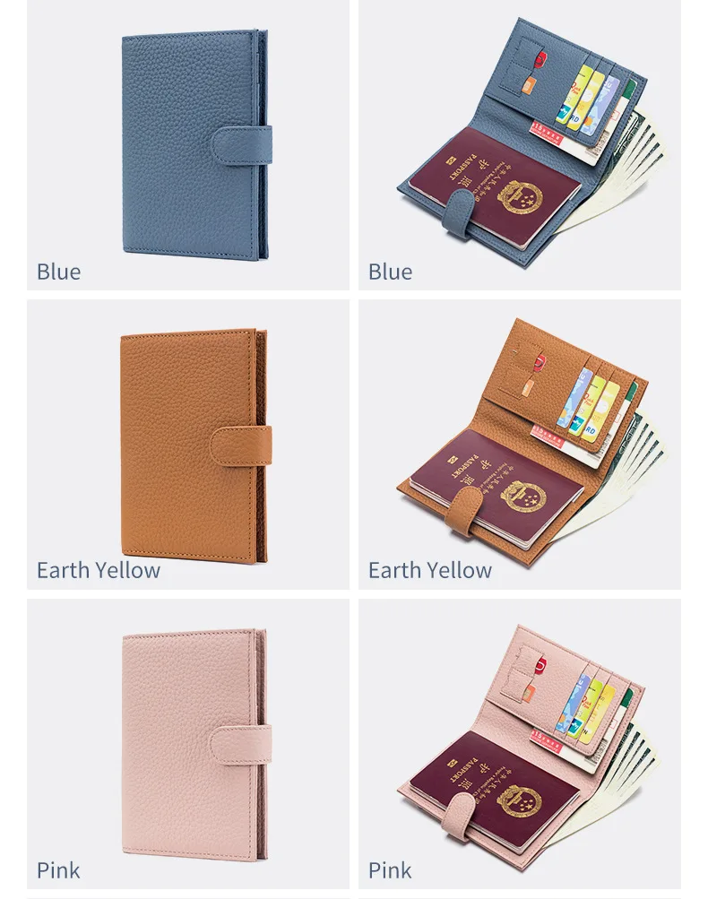 Color: Pink - Genuine Cow Leather Passport Holder Travel Wallet with Zipper Pocket Card Holder RFID Blocking Bifold Wallet for Men and Women