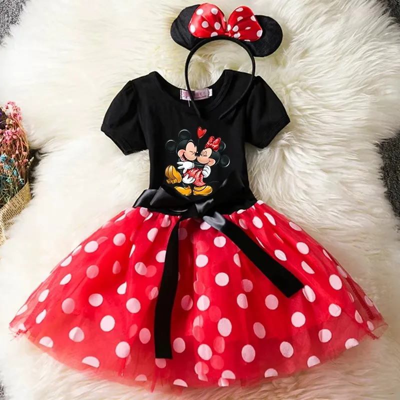 Color: Pink, Kid Size: 3T - Mickey Minnie Mouse Baby Girls Cosplay Costume Kids Fancy Polka Dot Dress Princess Dress Children Birthday Party Clothing Gift
