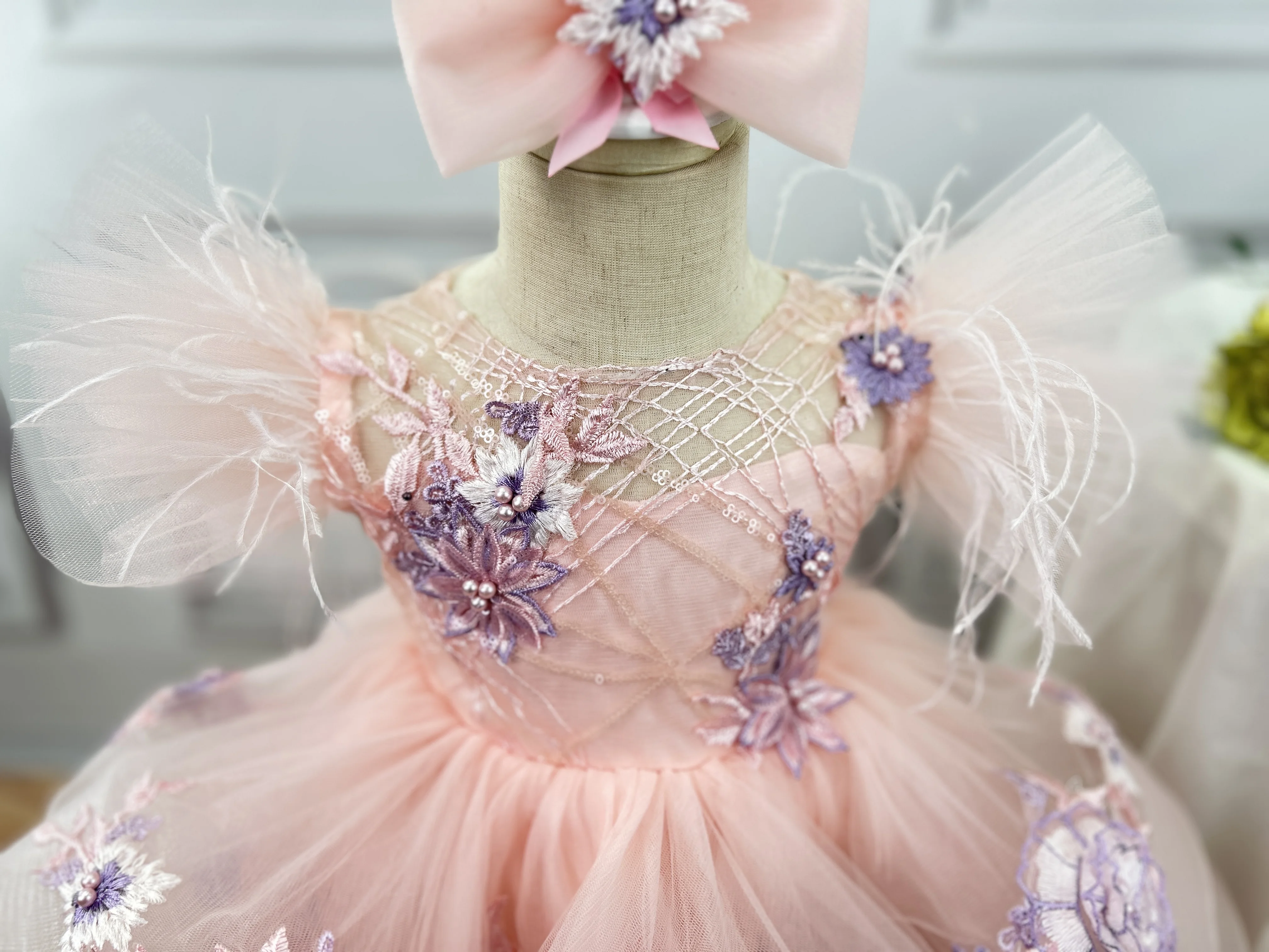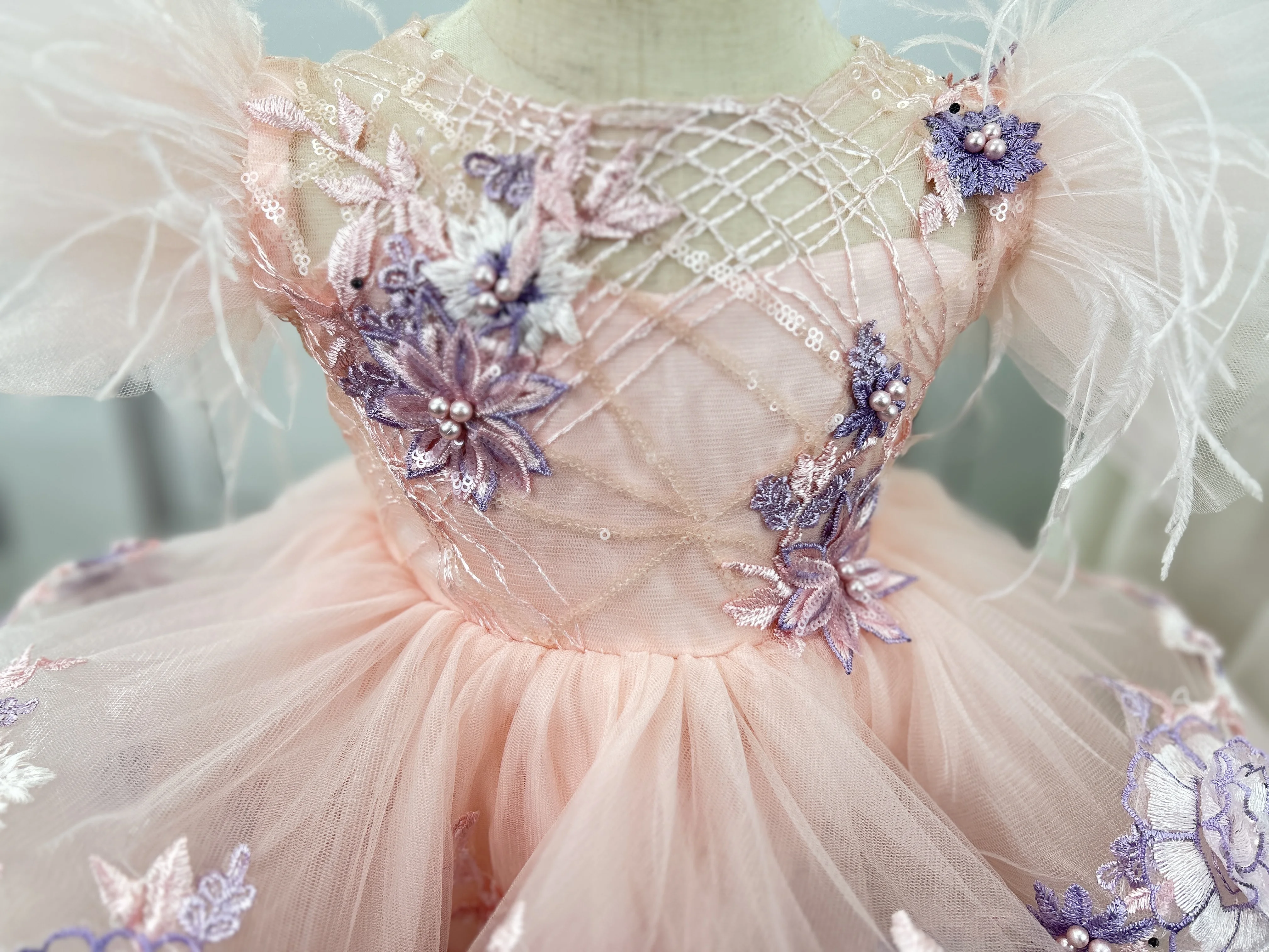 Color: Pink, Kid Size: 9M - New baby girl toddler dress birthday party dress exquisite unique girl sweet little fly sleeve cake skirt
