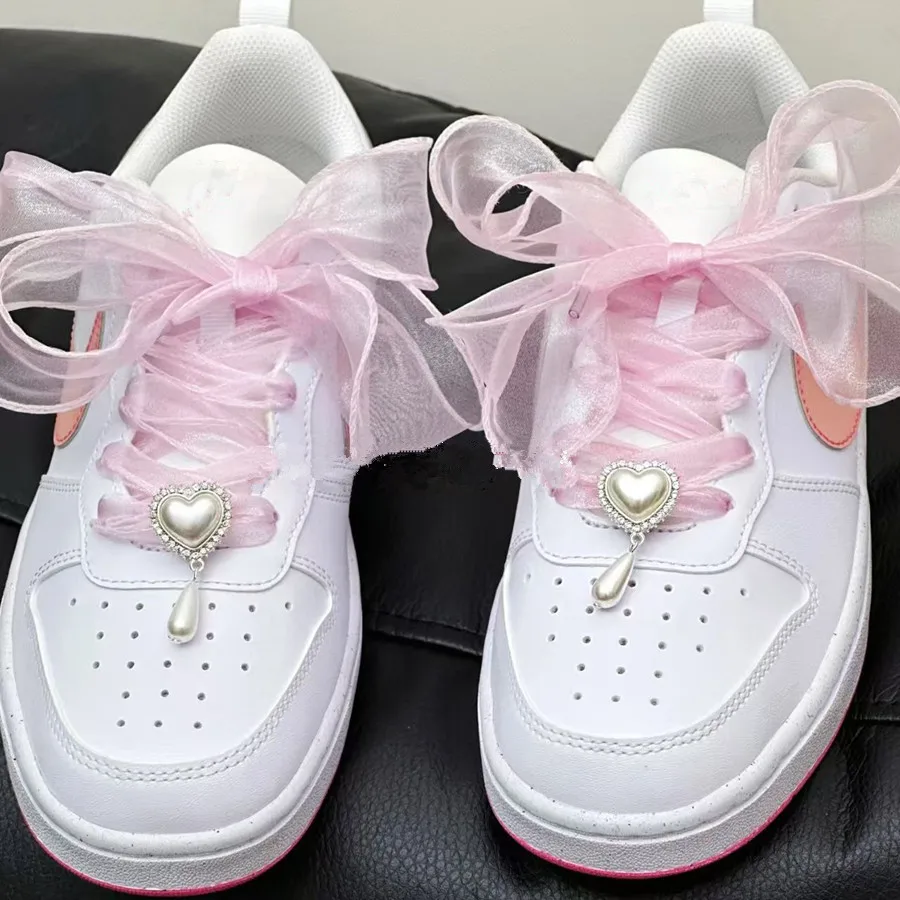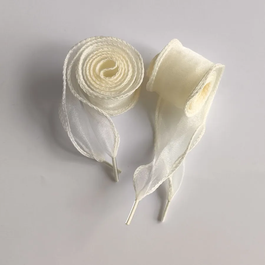 4cm Wide Festoon Fishtail Organza Shoelaces Wave Chiffen Yarn Bow Laces Beauty White Casual Sneaker DE Training Shoes Laces