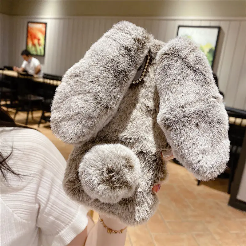 Color: pink, Material: Cotton Fabric - Warm Plush Rabbit Fluffy fur Cover for Samsung A15 A25 A35 A55 A14 A24 A34 A54 A13 A23 A33 A53 A12 A22 A32 A52 A51 Phone Case
