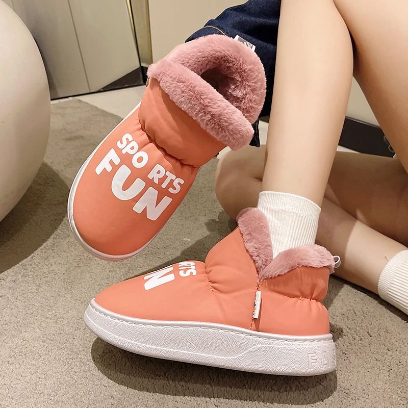 Color: Pink, Shoe Size: 36 - Women's Faux Fur Slippers 2024 New Warm Thicked Plush Bedroom Sandals Woman Comfort Soft Sole Home Couple Winter Shoes Slides